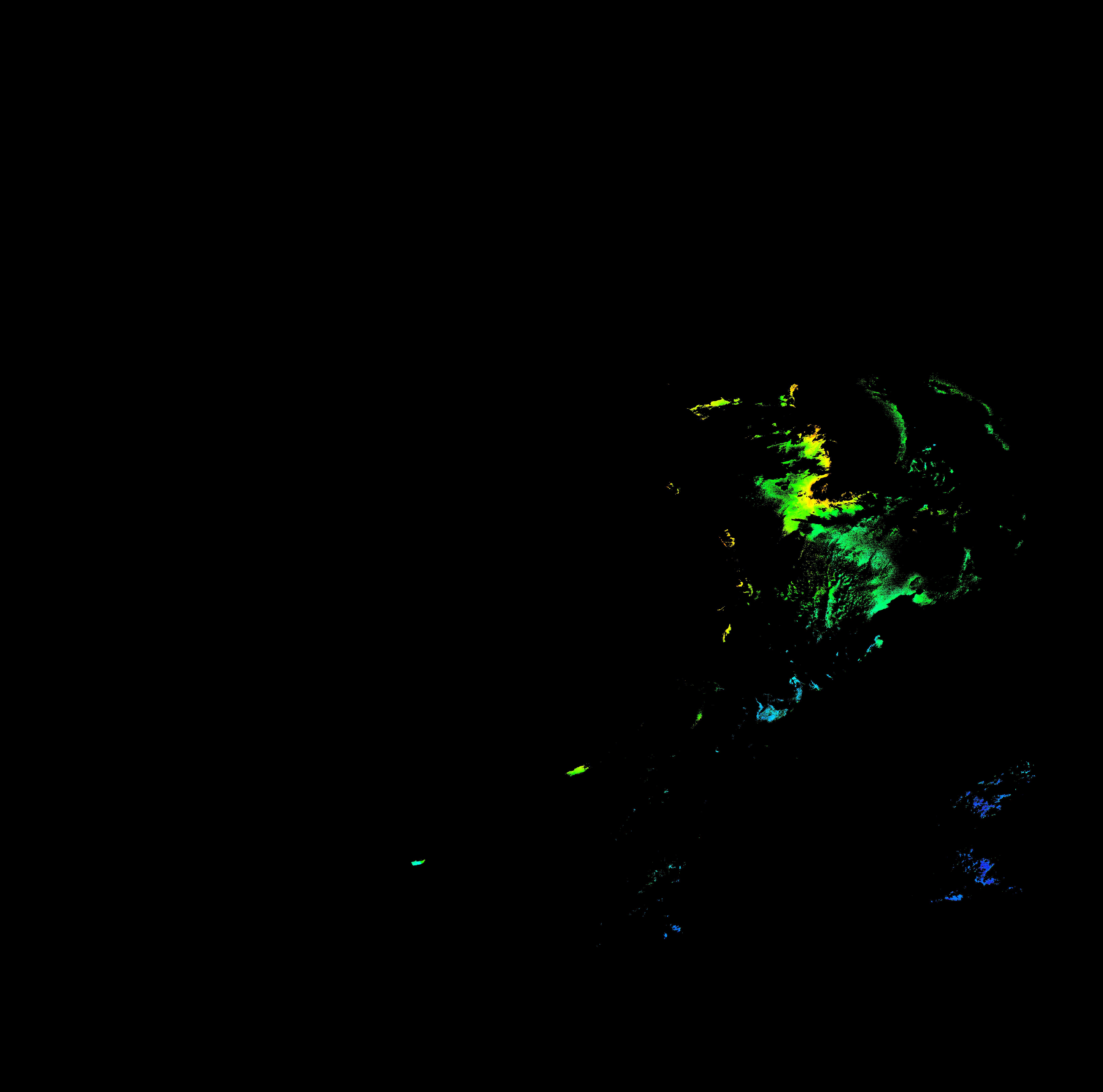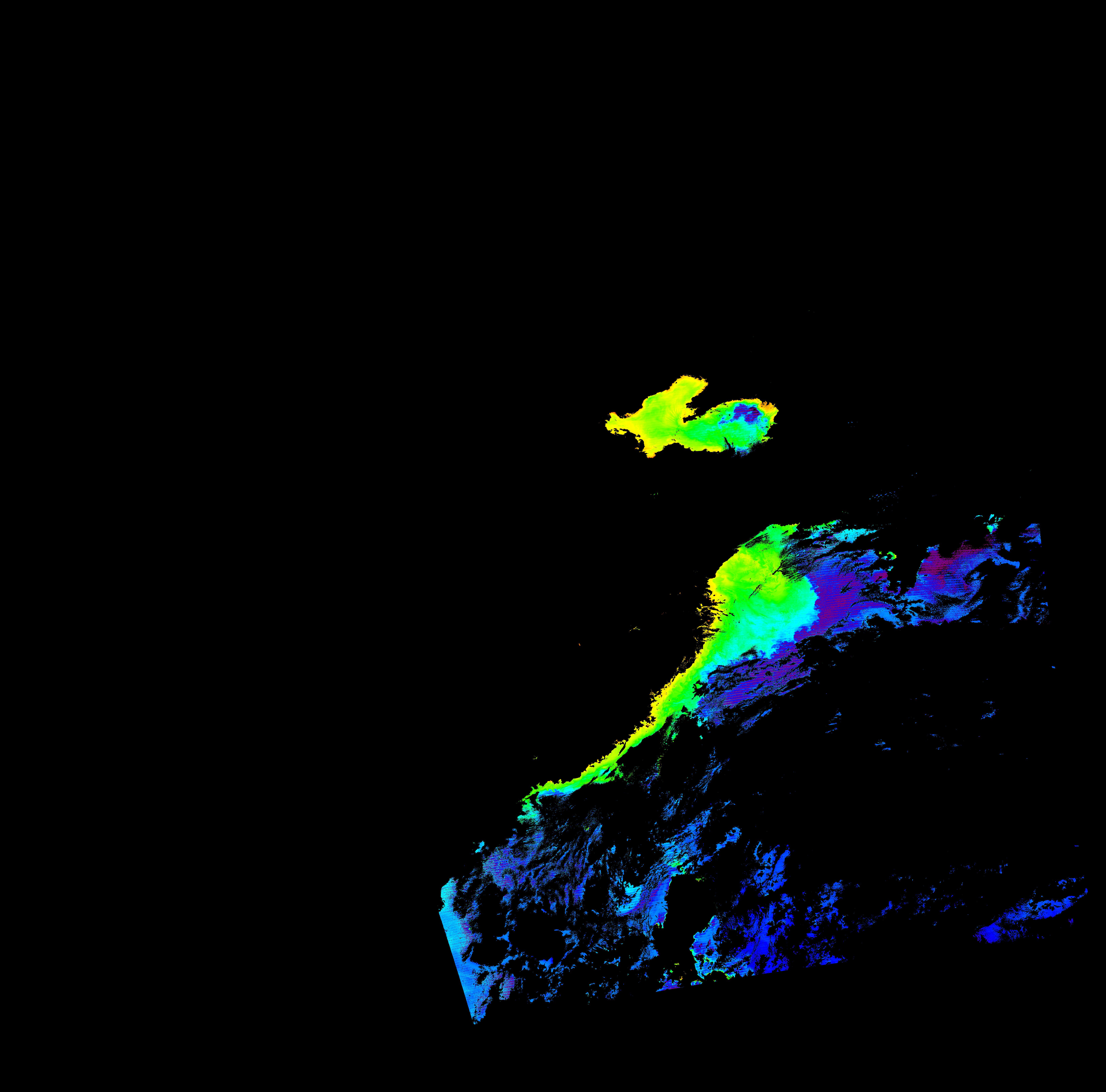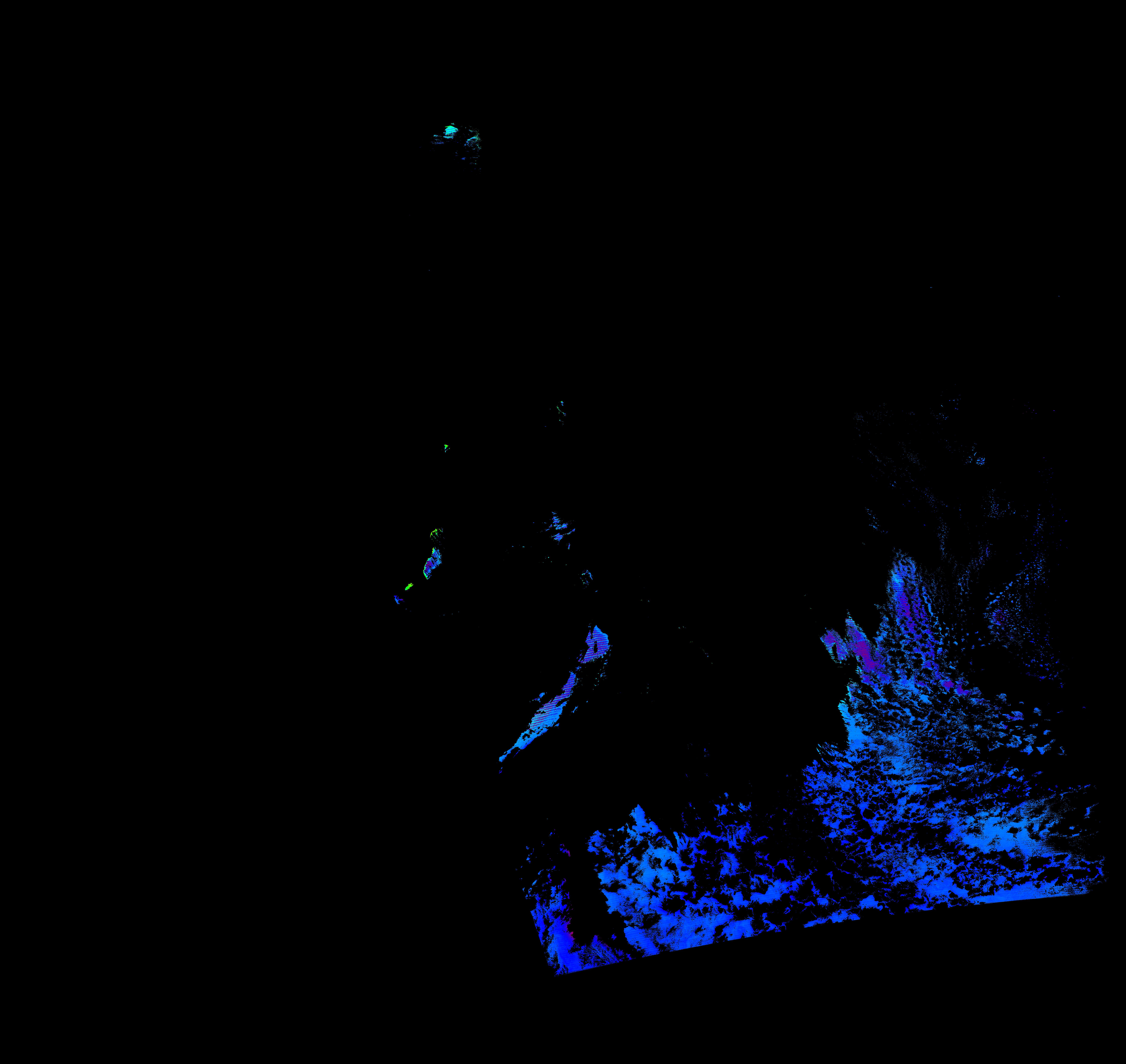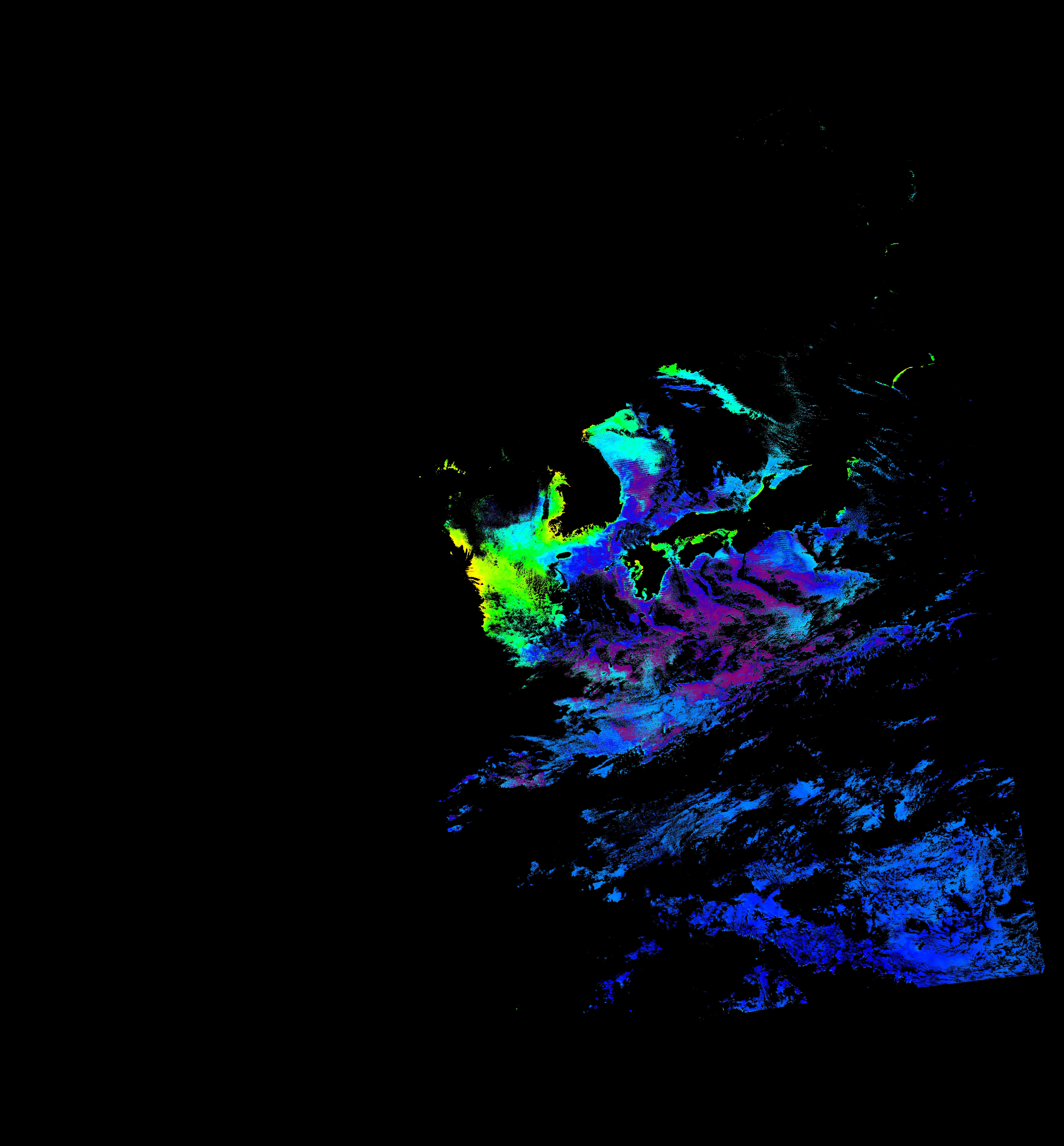 スオミ-NPP(S-NPP)に搭載された可視近赤外放射計群(VIIRS)は、可視波長帯域から、近赤外そして熱赤外波長帯域に感度を持つセンサーです。このサイトでは、農大オホーツクキャンパス(網走市)、情報大(千葉市)、農大宮古亜熱帯農場(宮古島市)の地上局において直接受信したVIIRSのデータから作成されたトル―カラー画像、海洋プロダクト、陸圏プロダクトをモニターすることが可能です。 Chl-a:0.01 to 100.0 mg m^-3 Chl-a=10^((geotiff_value-128)/63.5)