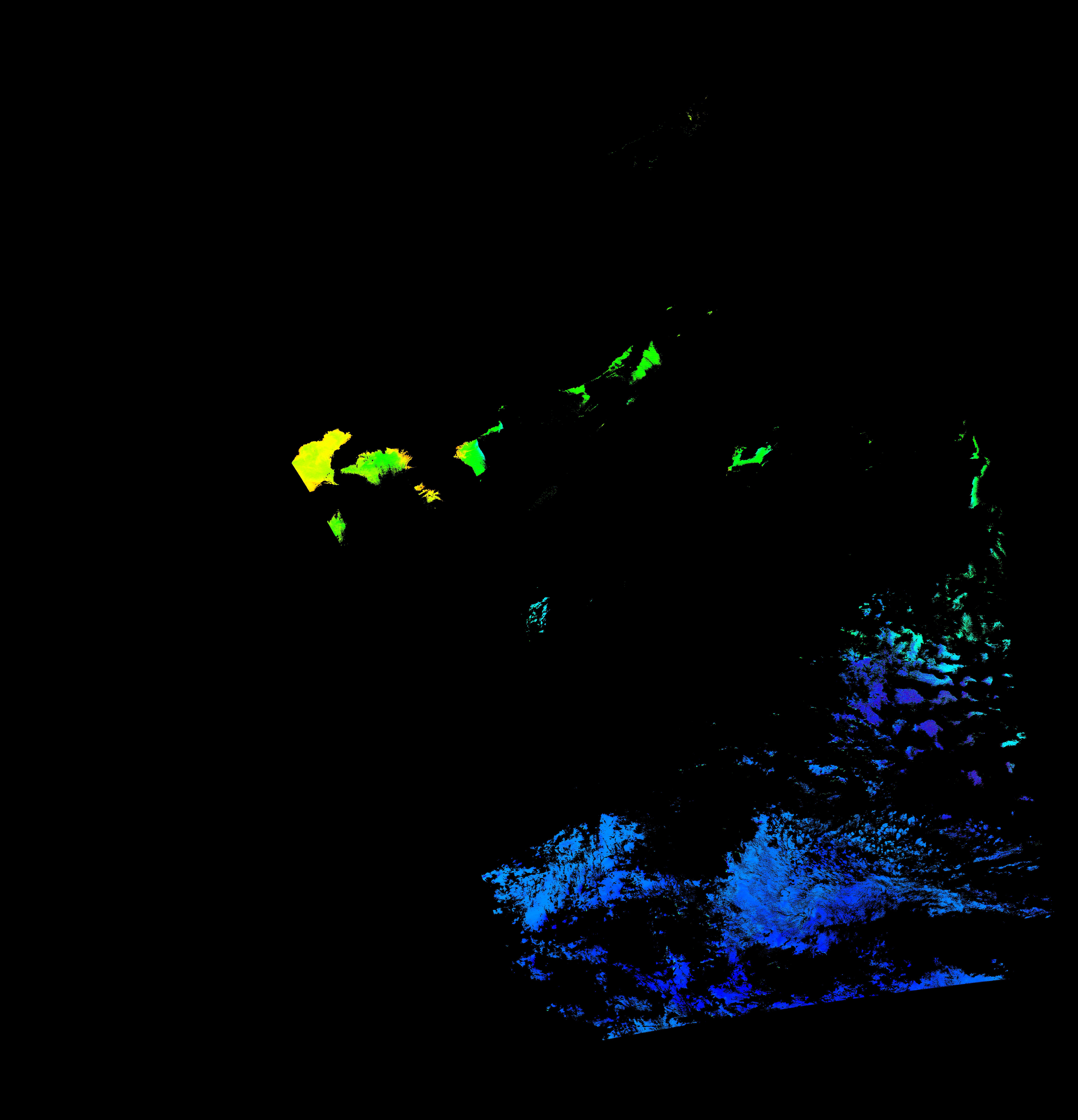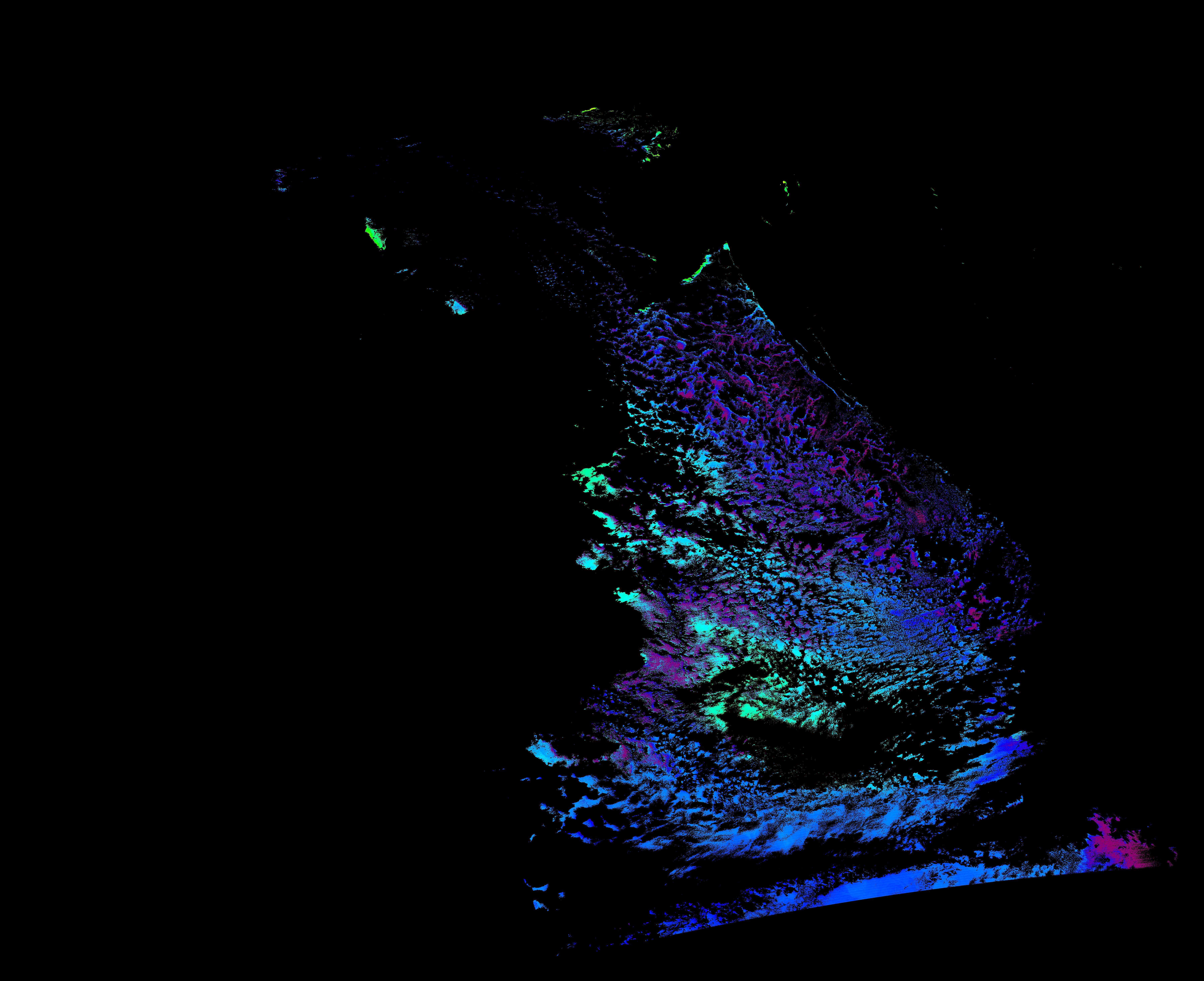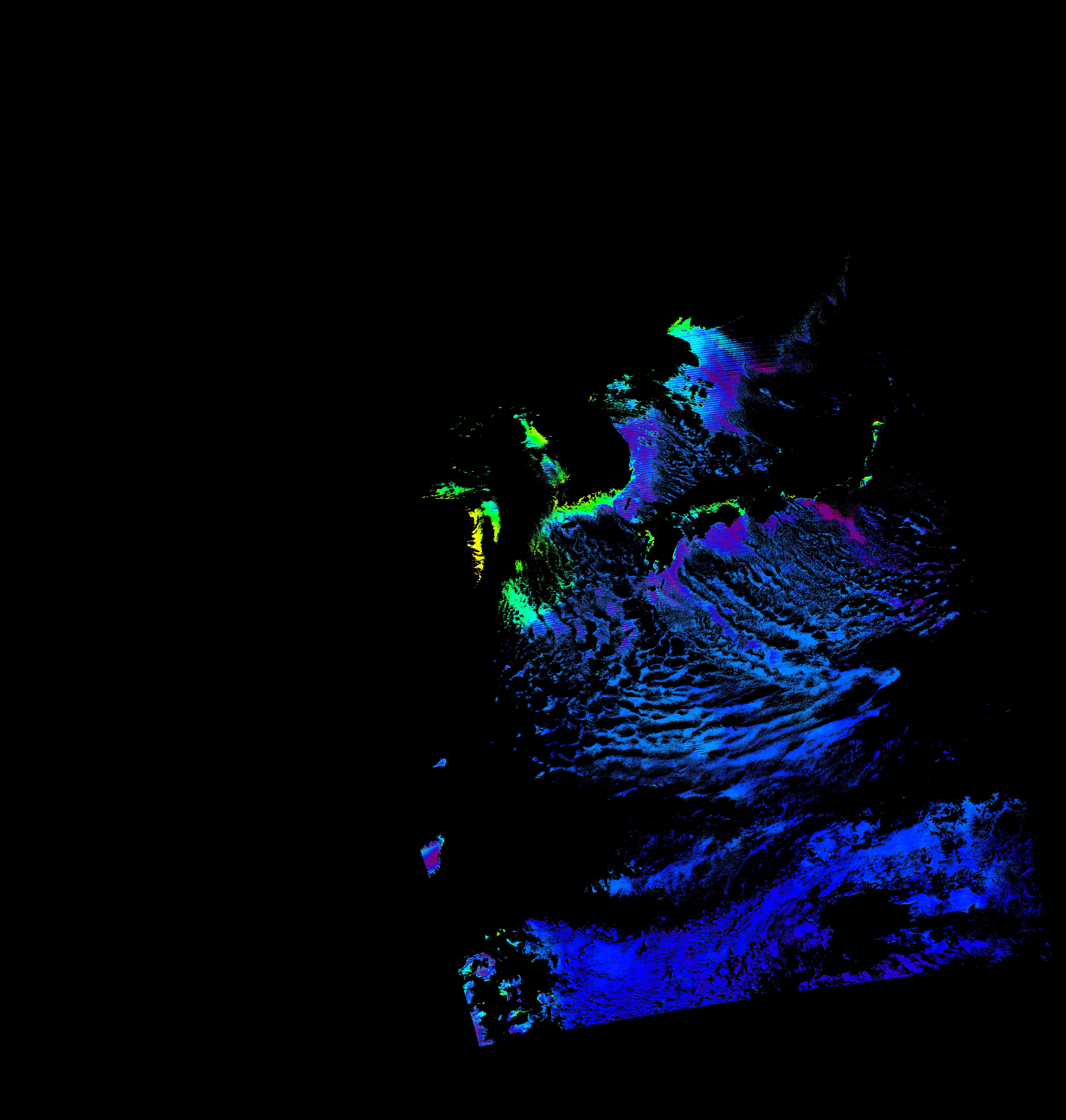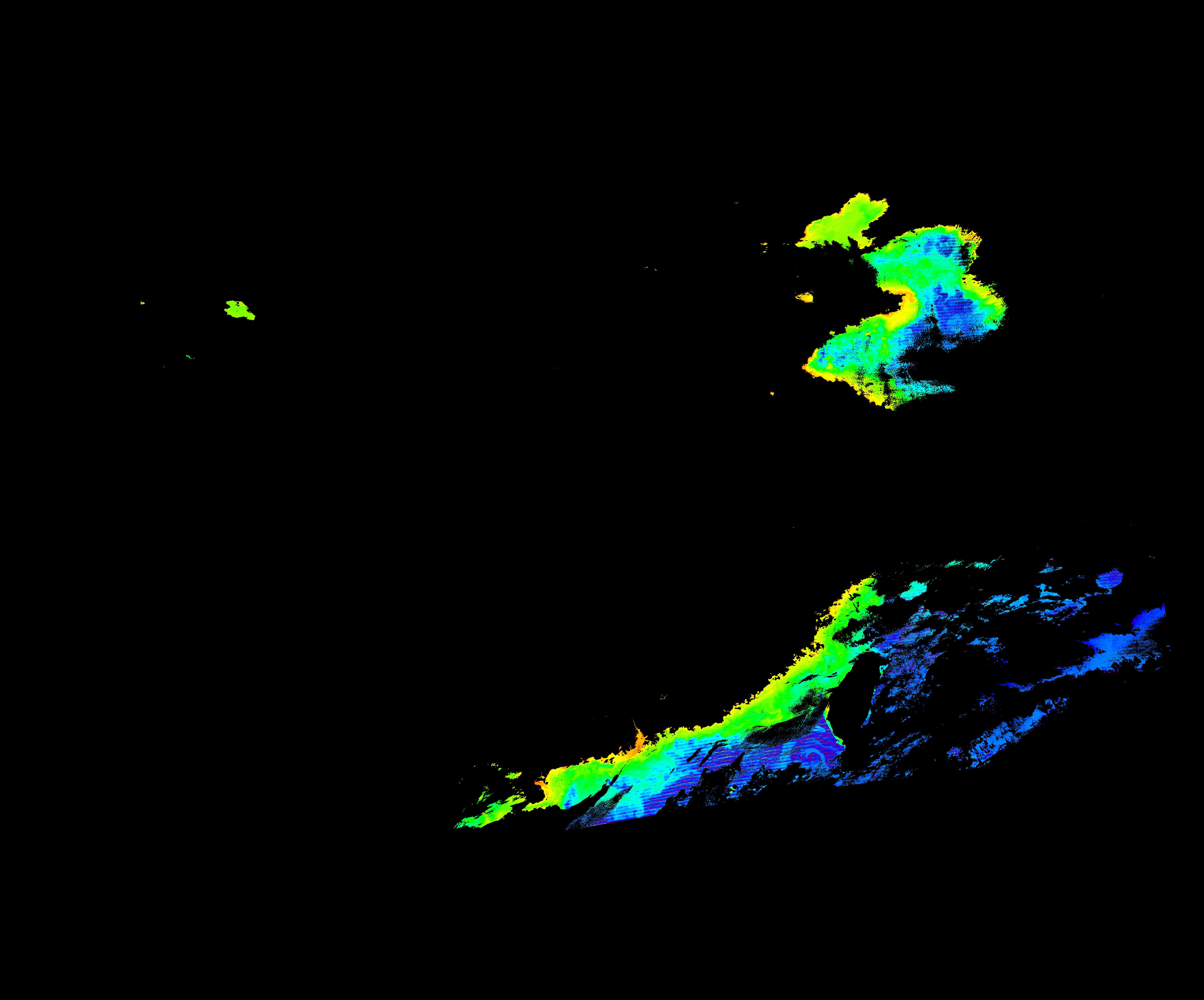 スオミ-NPP(S-NPP)に搭載された可視近赤外放射計群(VIIRS)は、可視波長帯域から、近赤外そして熱赤外波長帯域に感度を持つセンサーです。このサイトでは、農大オホーツクキャンパス(網走市)、情報大(千葉市)、農大宮古亜熱帯農場(宮古島市)の地上局において直接受信したVIIRSのデータから作成されたトル―カラー画像、海洋プロダクト、陸圏プロダクトをモニターすることが可能です。 Chl-a:0.01 to 100.0 mg m^-3 Chl-a=10^((geotiff_value-128)/63.5)
