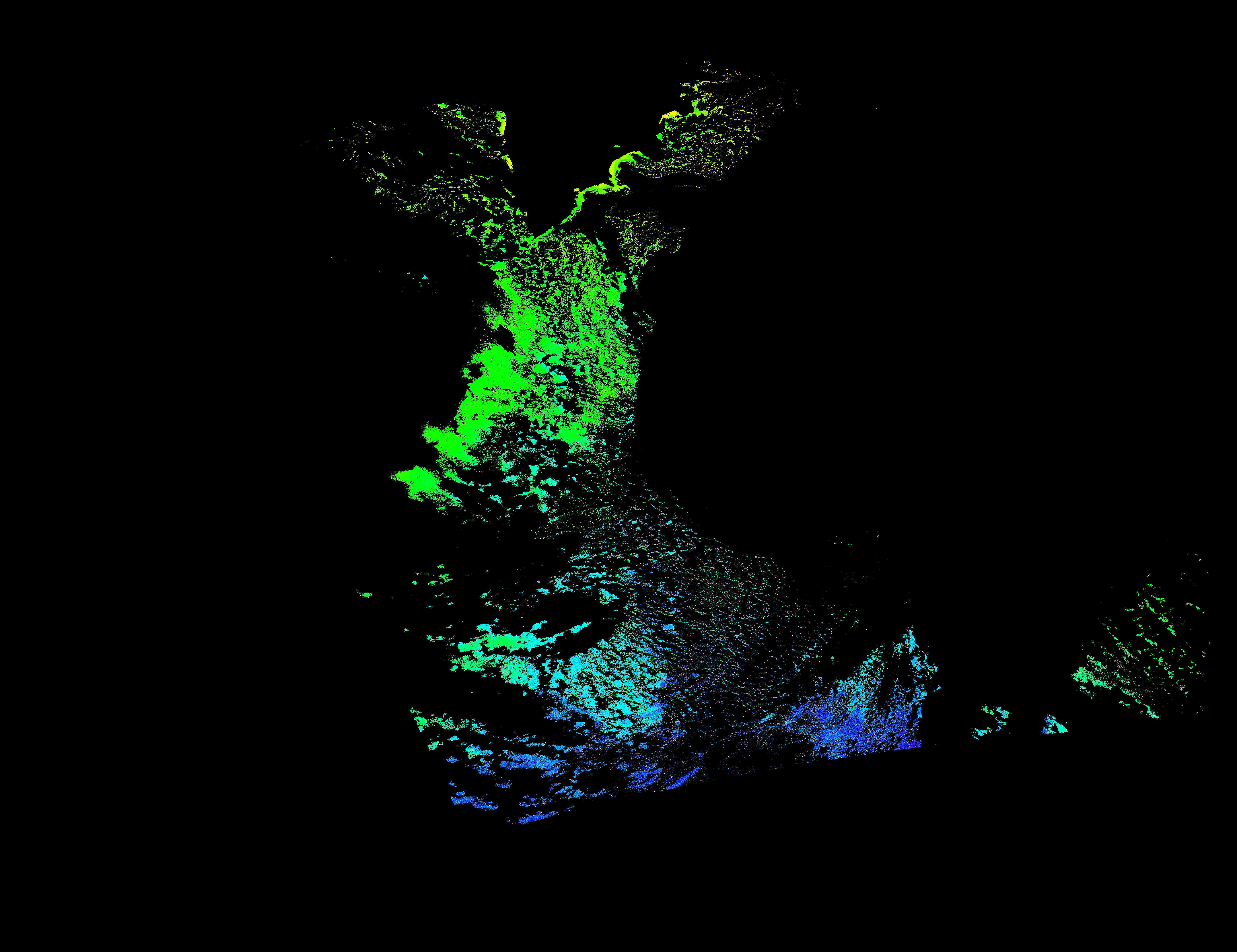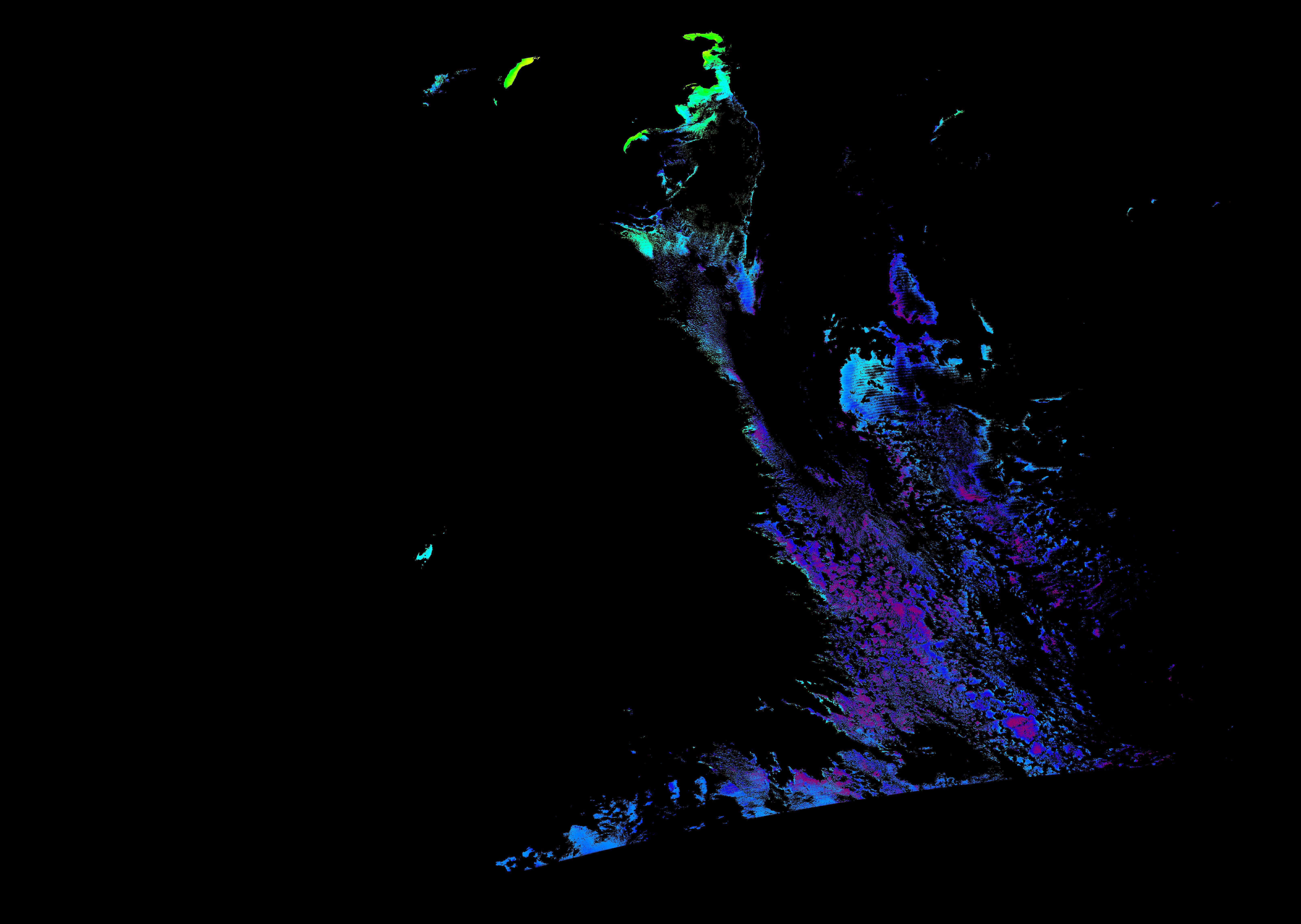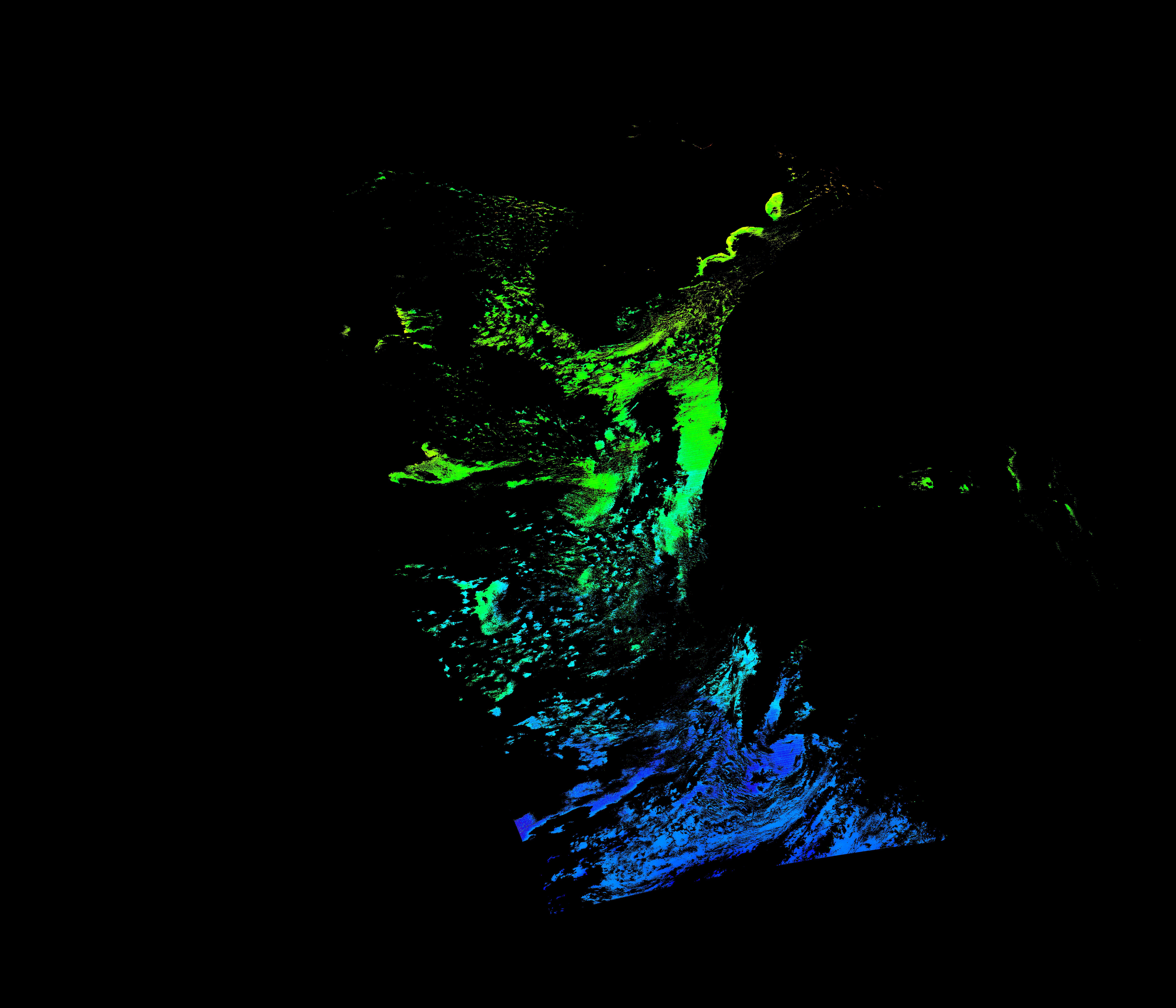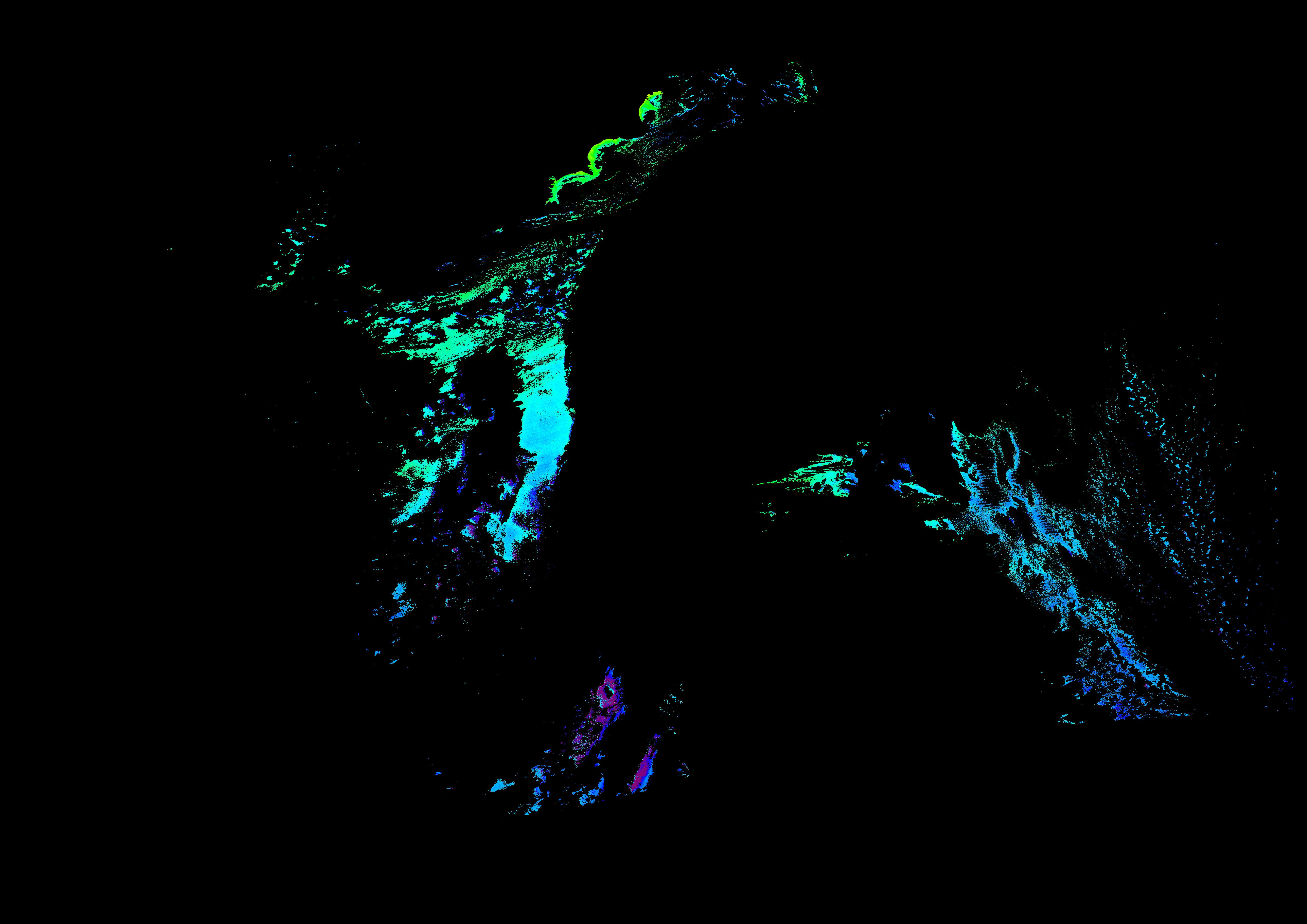スオミ-NPP(S-NPP)に搭載された可視近赤外放射計群(VIIRS)は、可視波長帯域から、近赤外そして熱赤外波長帯域に感度を持つセンサーです。このサイトでは、農大オホーツクキャンパス(網走市)、情報大(千葉市)、農大宮古亜熱帯農場(宮古島市)の地上局において直接受信したVIIRSのデータから作成されたトル―カラー画像、海洋プロダクト、陸圏プロダクトをモニターすることが可能です。 Chl-a:0.01 to 100.0 mg m^-3 Chl-a=10^((geotiff_value-128)/63.5)