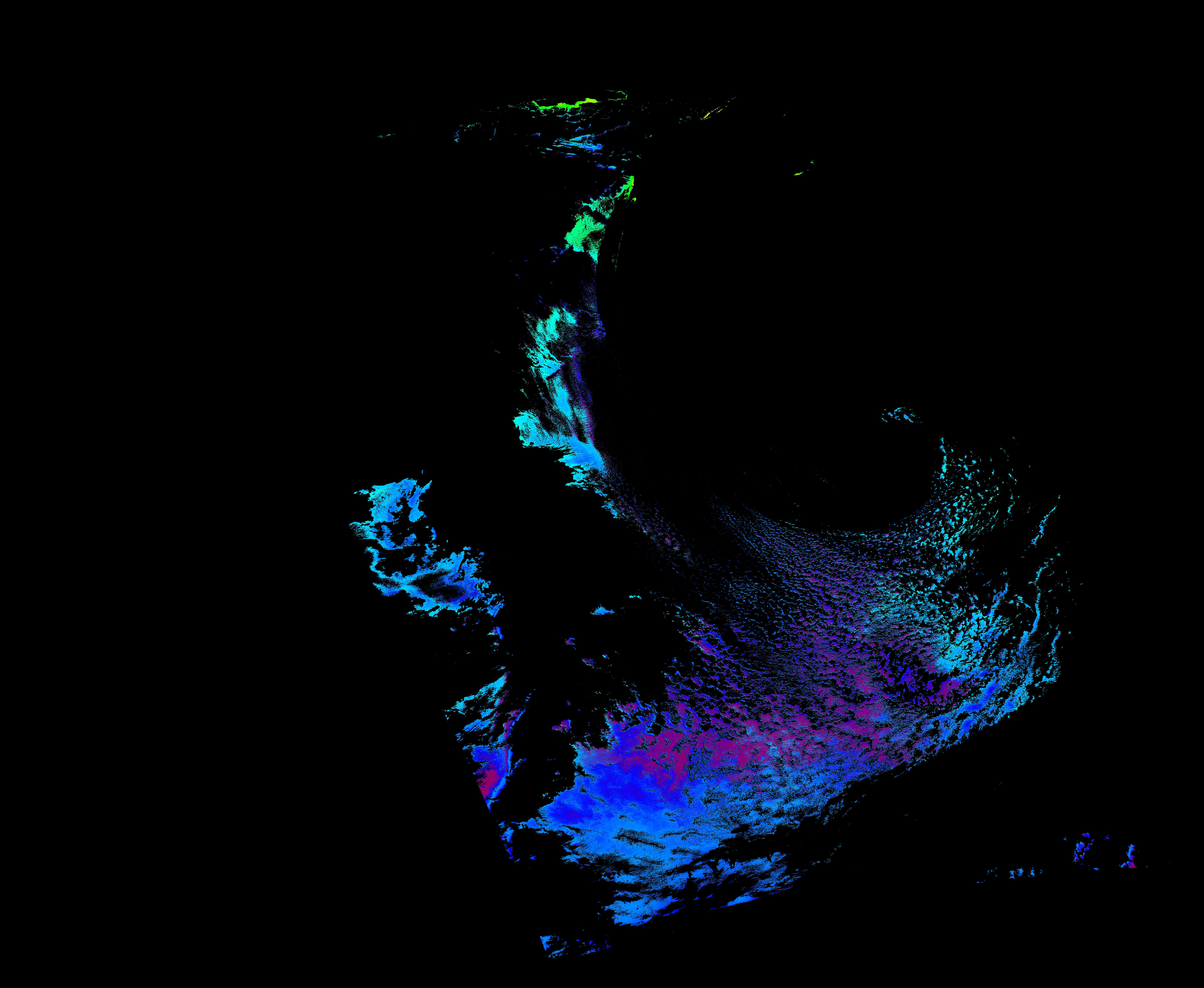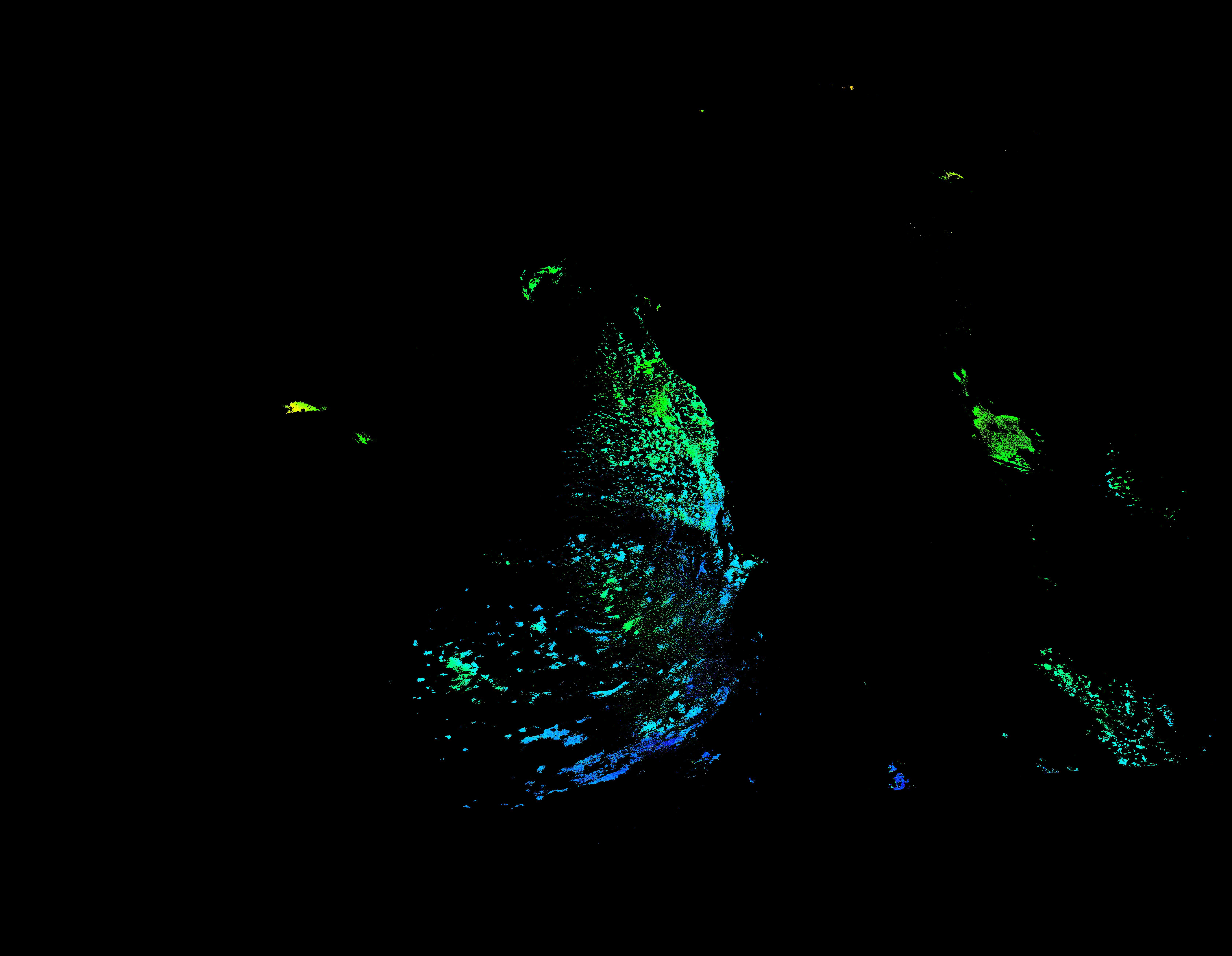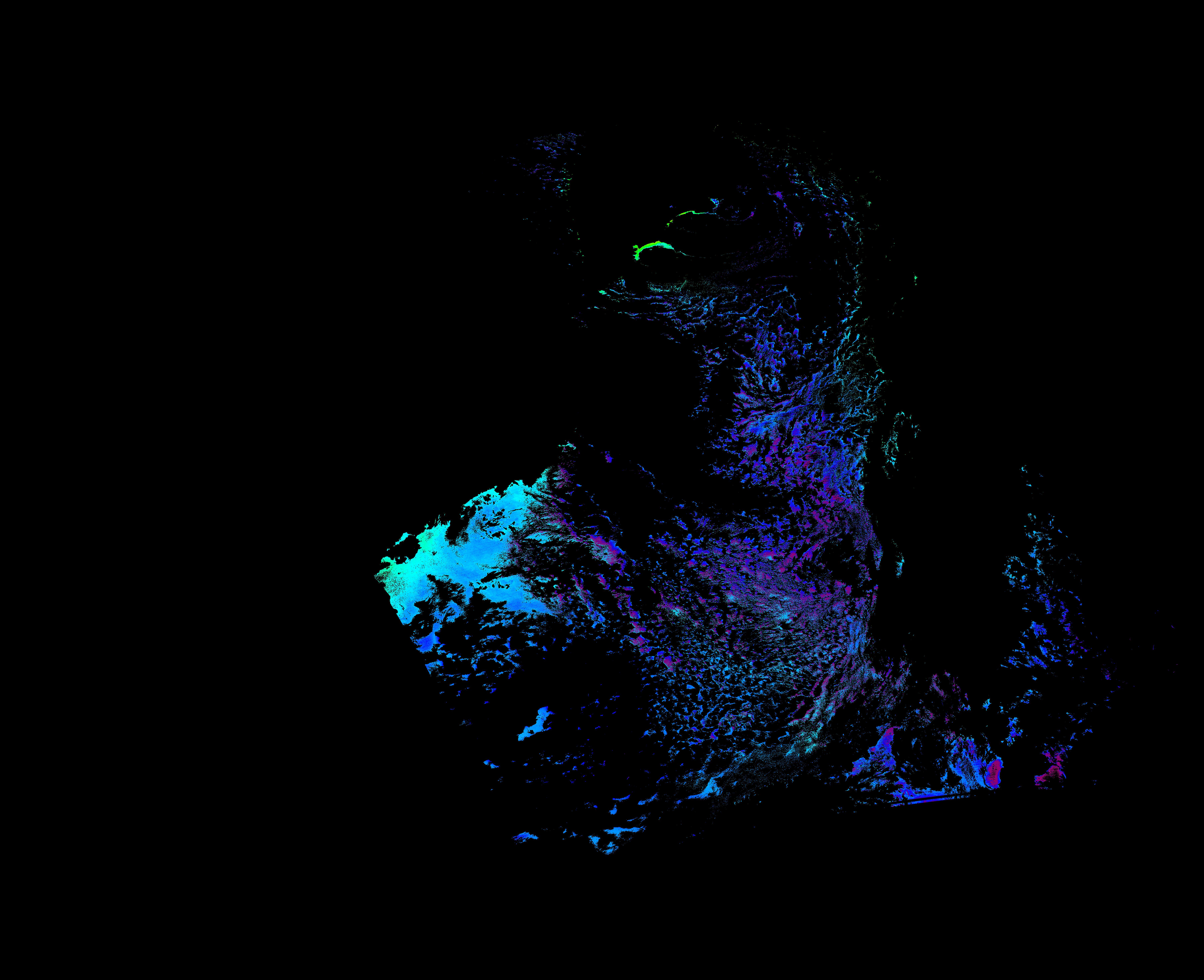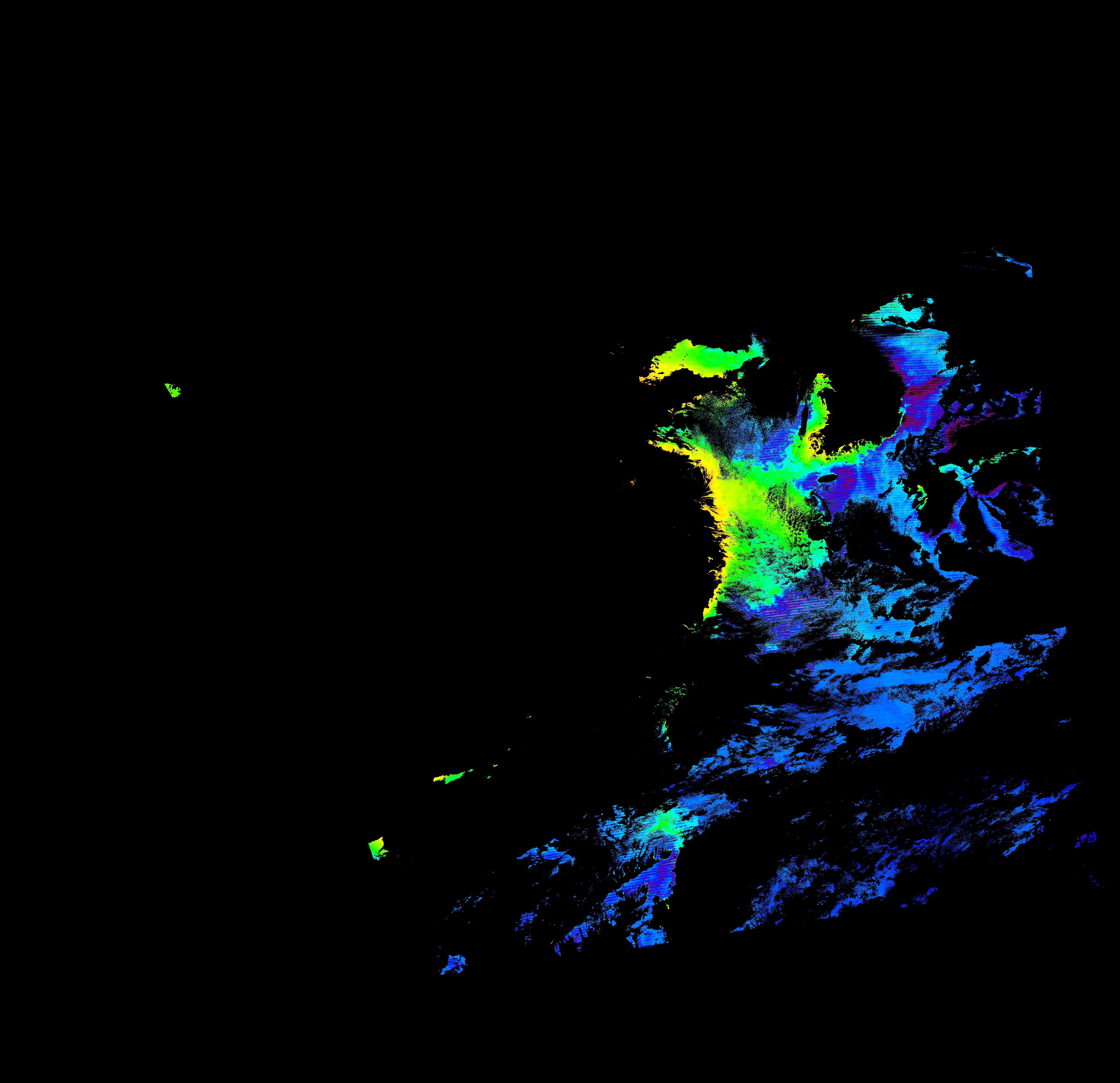 スオミ-NPP(S-NPP)に搭載された可視近赤外放射計群(VIIRS)は、可視波長帯域から、近赤外そして熱赤外波長帯域に感度を持つセンサーです。このサイトでは、農大オホーツクキャンパス(網走市)、情報大(千葉市)、農大宮古亜熱帯農場(宮古島市)の地上局において直接受信したVIIRSのデータから作成されたトル―カラー画像、海洋プロダクト、陸圏プロダクトをモニターすることが可能です。 Chl-a:0.01 to 100.0 mg m^-3 Chl-a=10^((geotiff_value-128)/63.5)