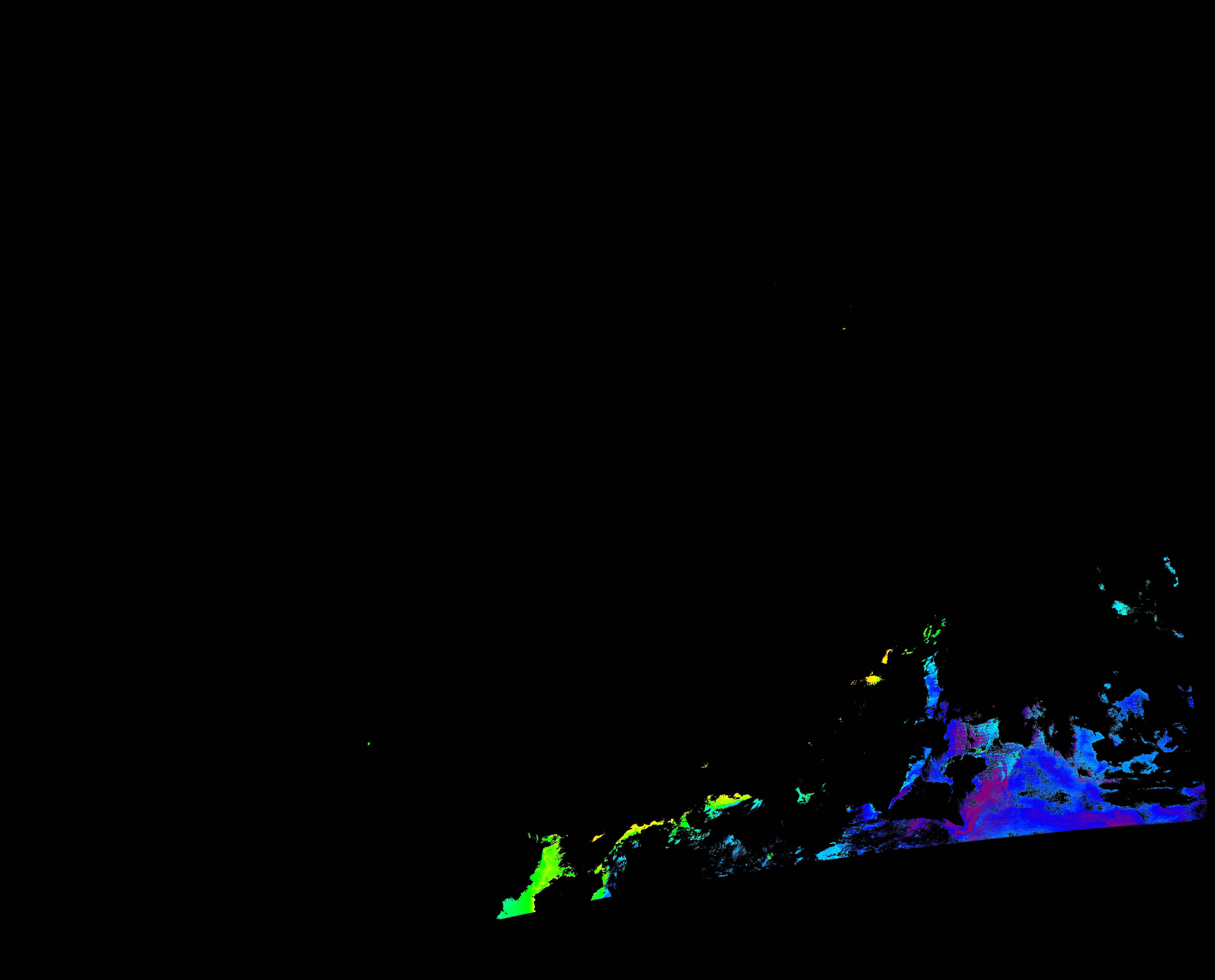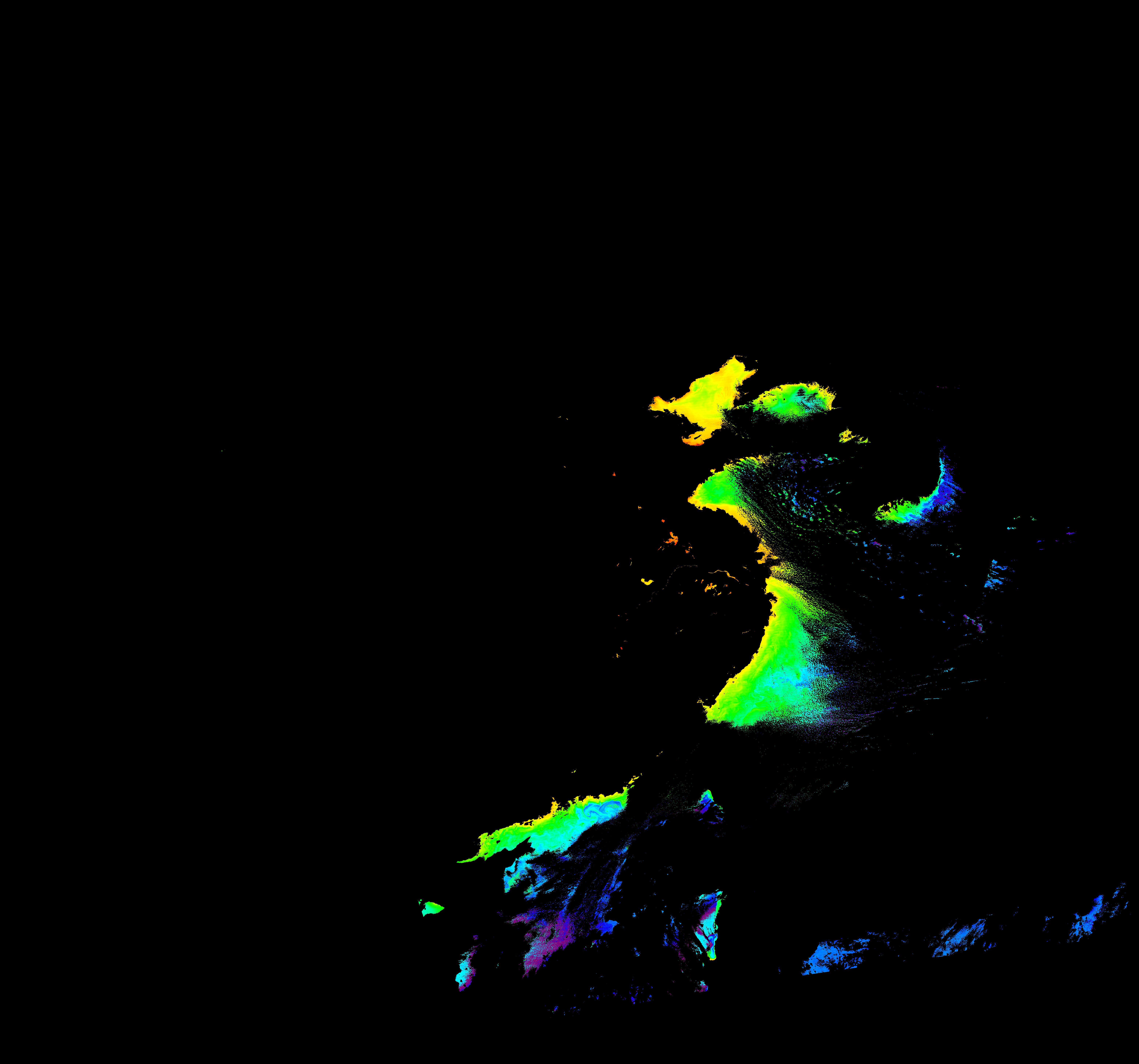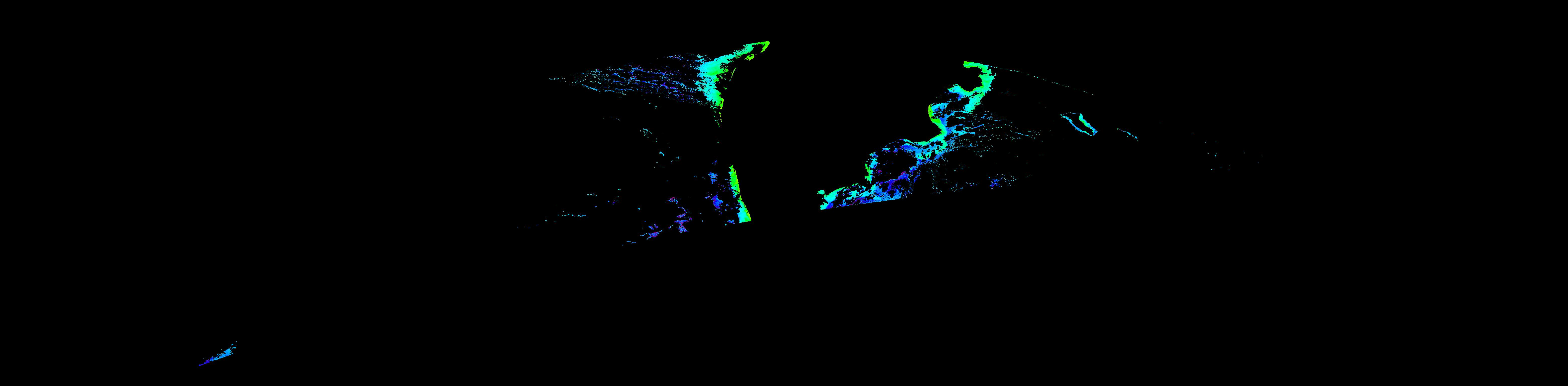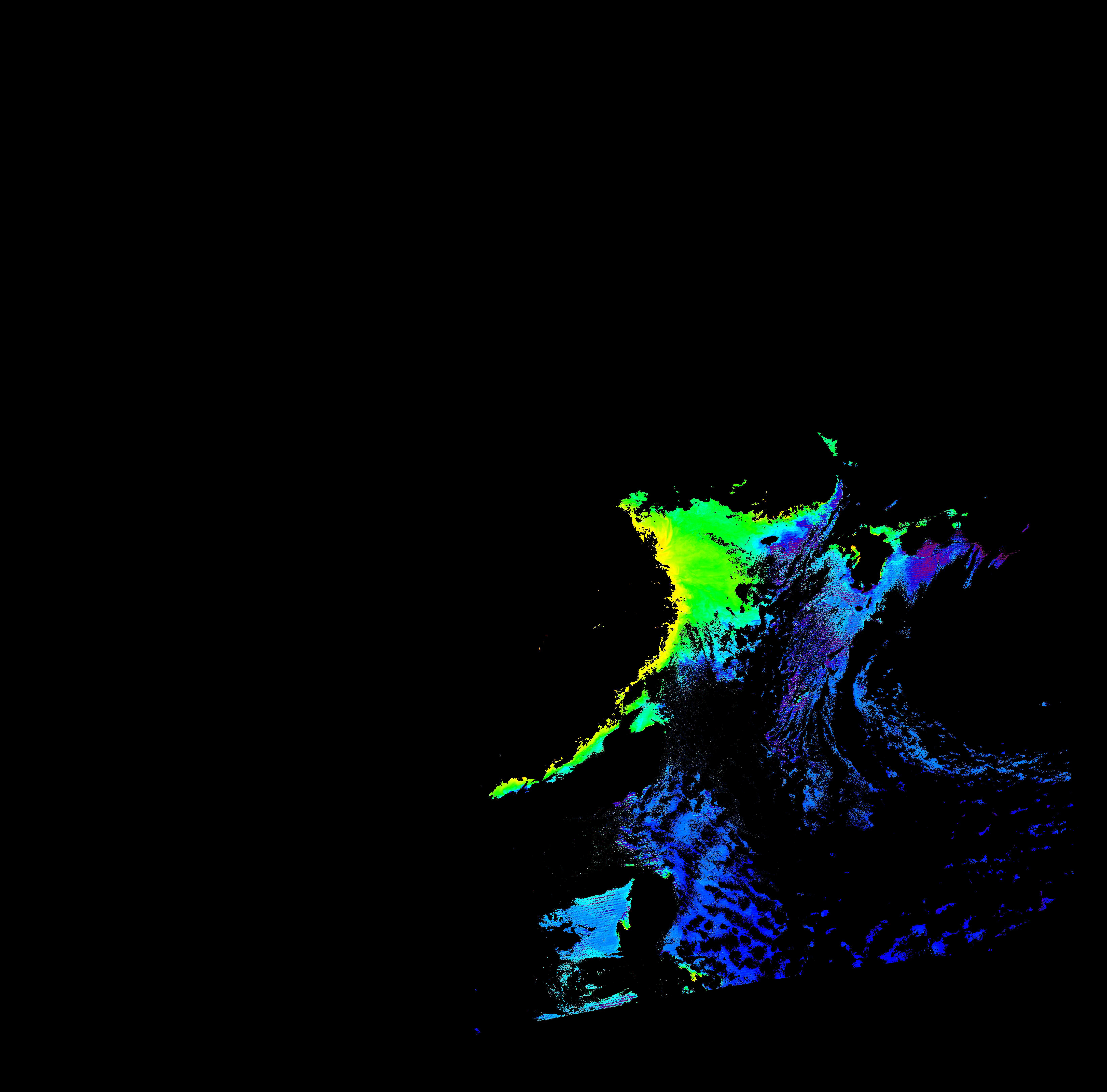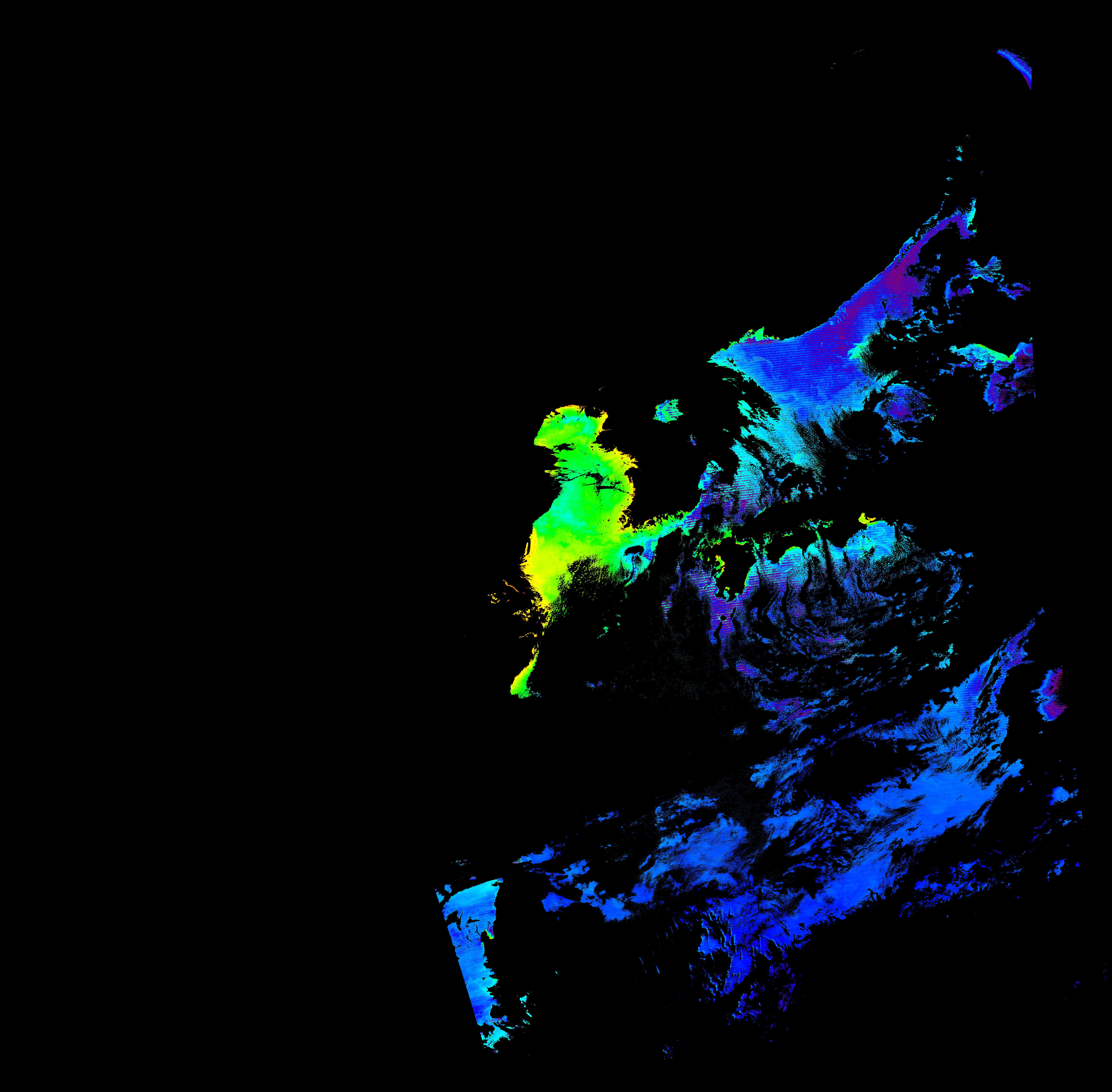 スオミ-NPP(S-NPP)に搭載された可視近赤外放射計群(VIIRS)は、可視波長帯域から、近赤外そして熱赤外波長帯域に感度を持つセンサーです。このサイトでは、農大オホーツクキャンパス(網走市)、情報大(千葉市)、農大宮古亜熱帯農場(宮古島市)の地上局において直接受信したVIIRSのデータから作成されたトル―カラー画像、海洋プロダクト、陸圏プロダクトをモニターすることが可能です。 Chl-a:0.01 to 100.0 mg m^-3 Chl-a=10^((geotiff_value-128)/63.5)