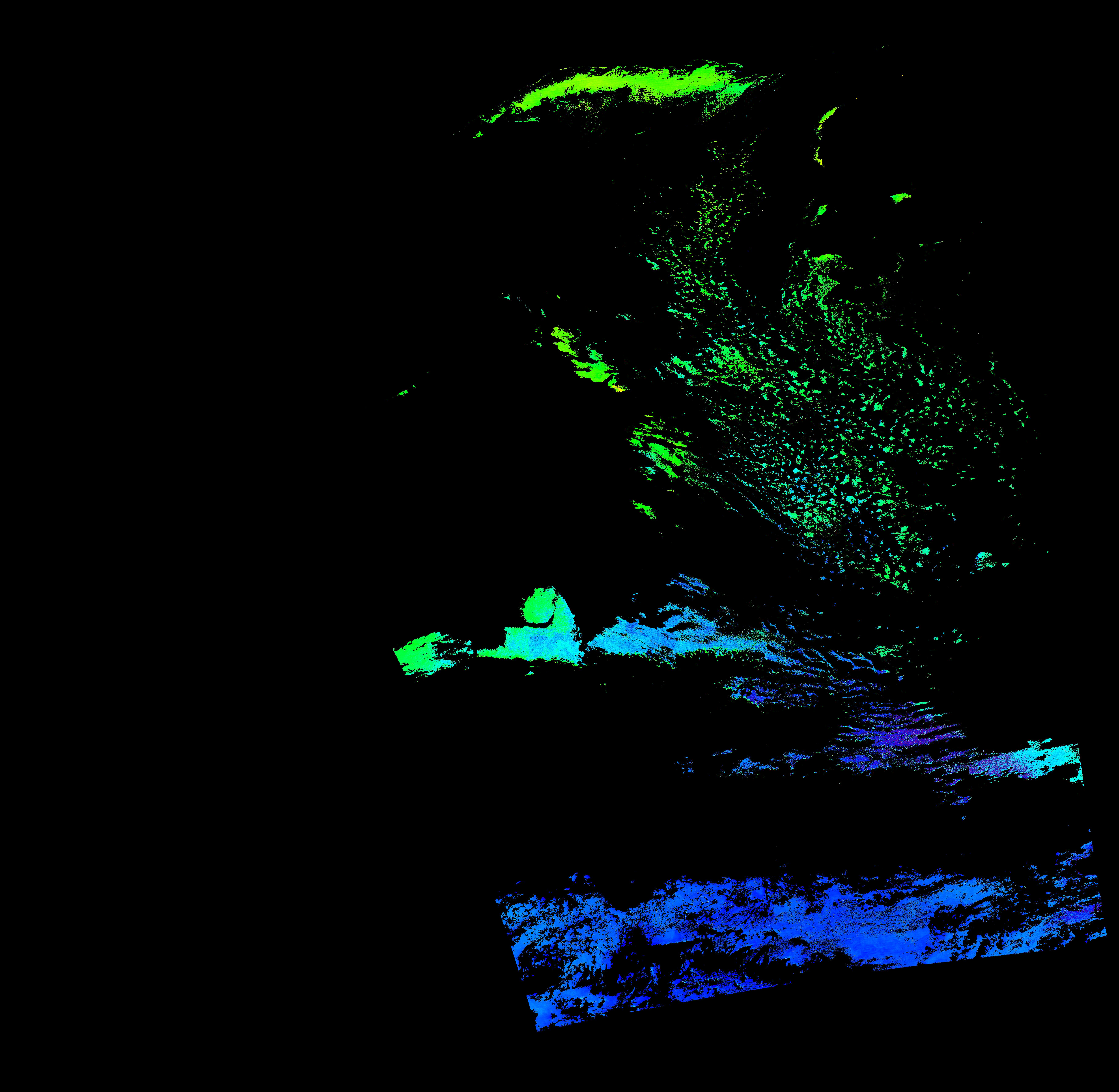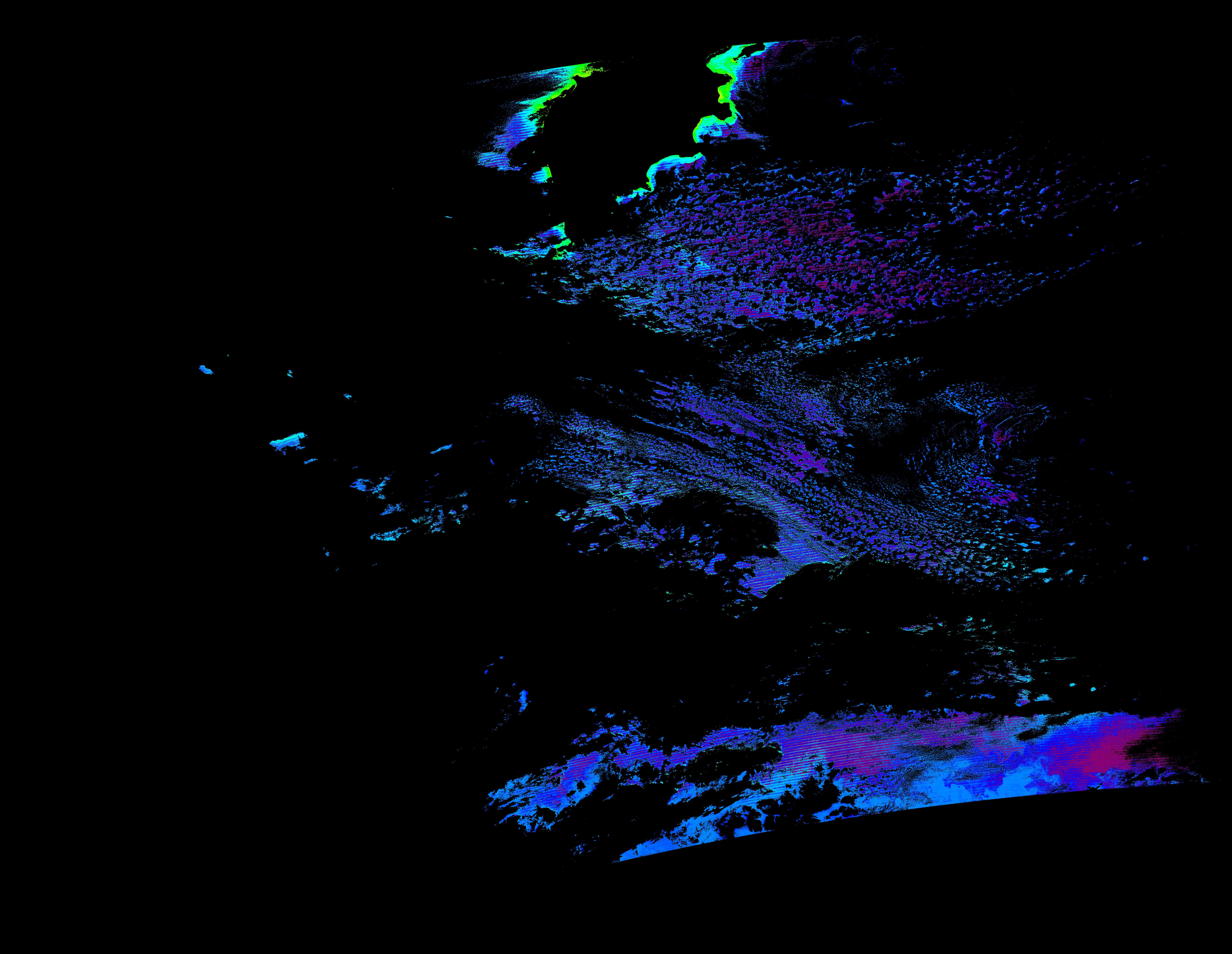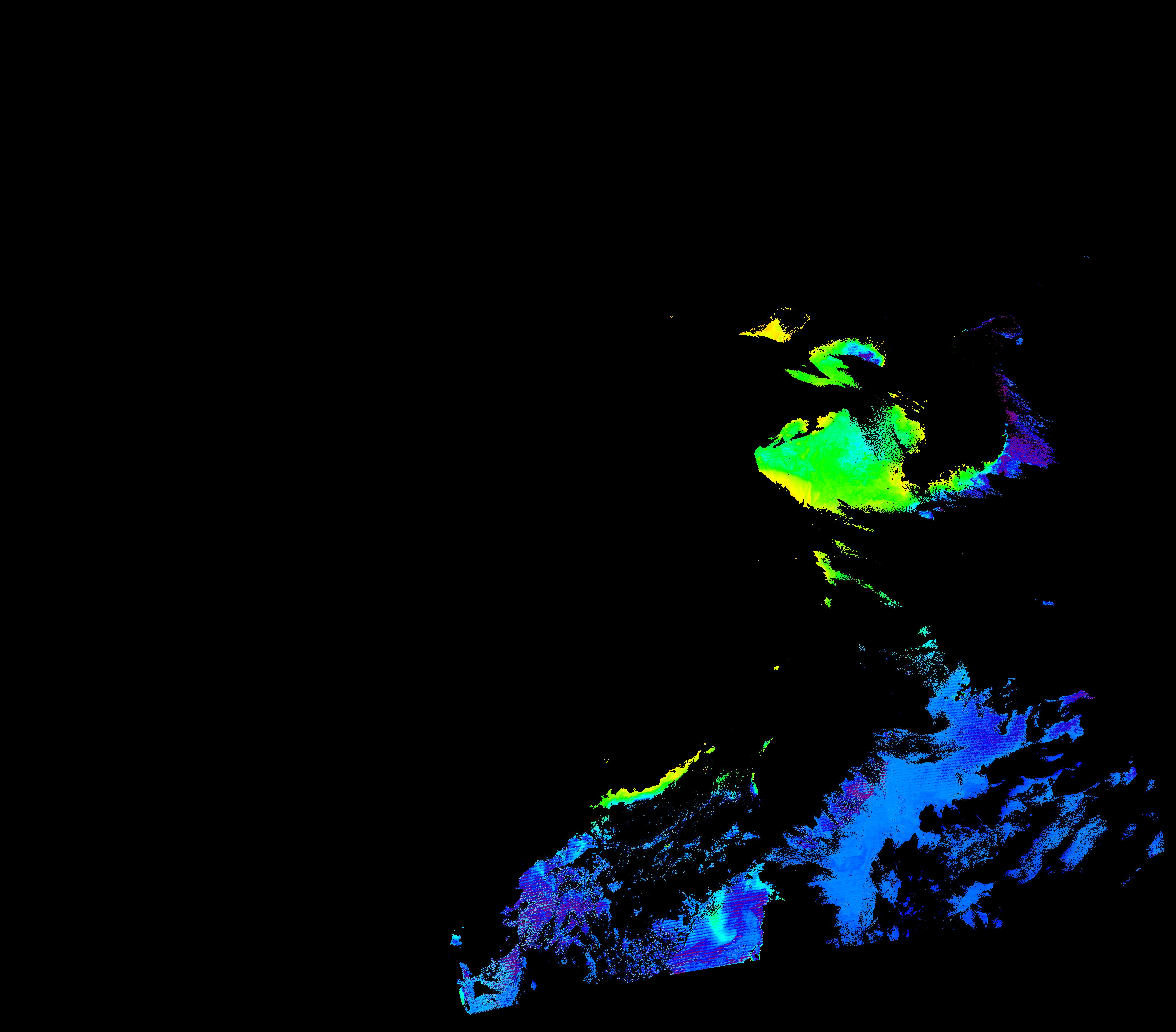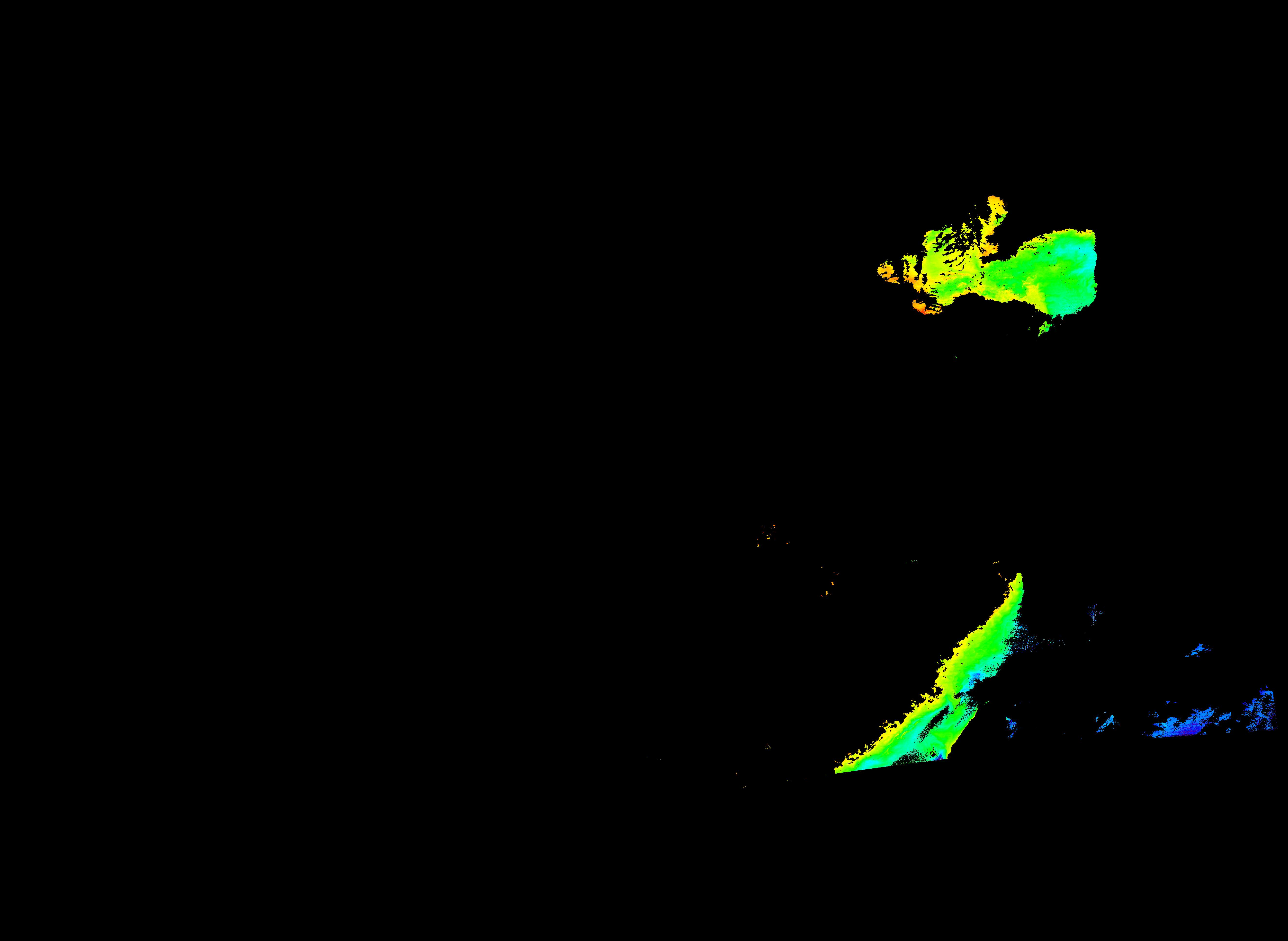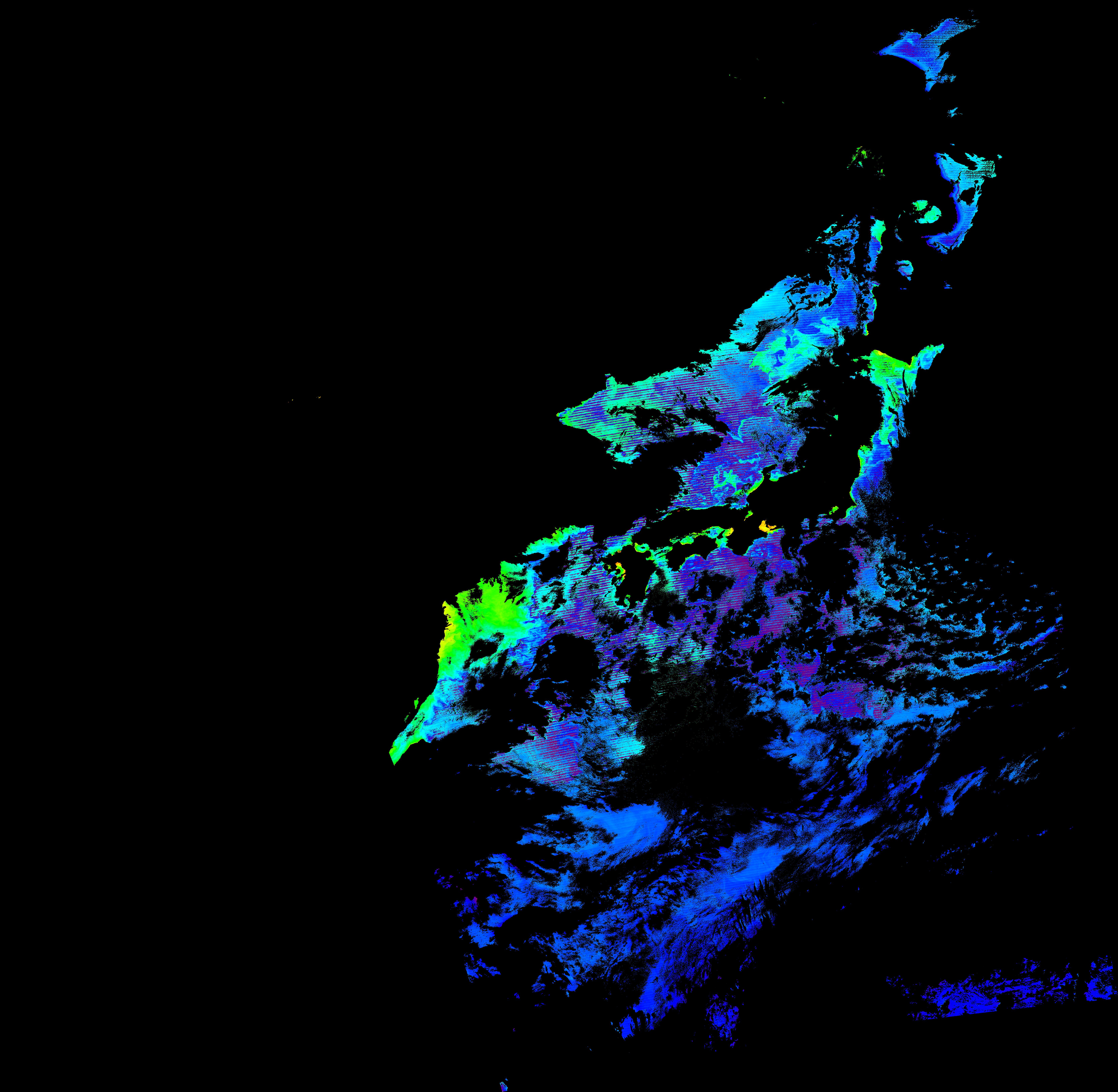 スオミ-NPP(S-NPP)に搭載された可視近赤外放射計群(VIIRS)は、可視波長帯域から、近赤外そして熱赤外波長帯域に感度を持つセンサーです。このサイトでは、農大オホーツクキャンパス(網走市)、情報大(千葉市)、農大宮古亜熱帯農場(宮古島市)の地上局において直接受信したVIIRSのデータから作成されたトル―カラー画像、海洋プロダクト、陸圏プロダクトをモニターすることが可能です。 Chl-a:0.01 to 100.0 mg m^-3 Chl-a=10^((geotiff_value-128)/63.5)