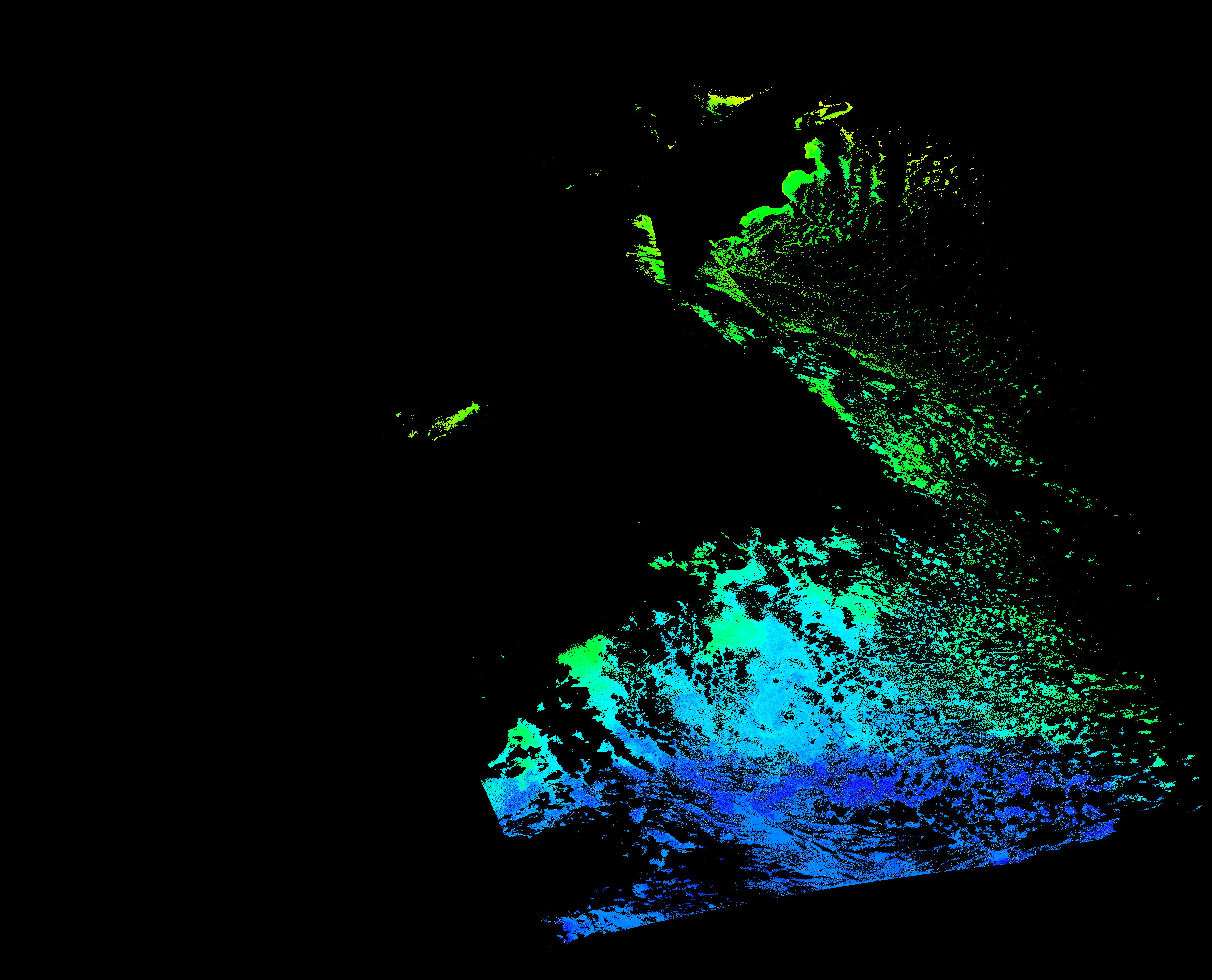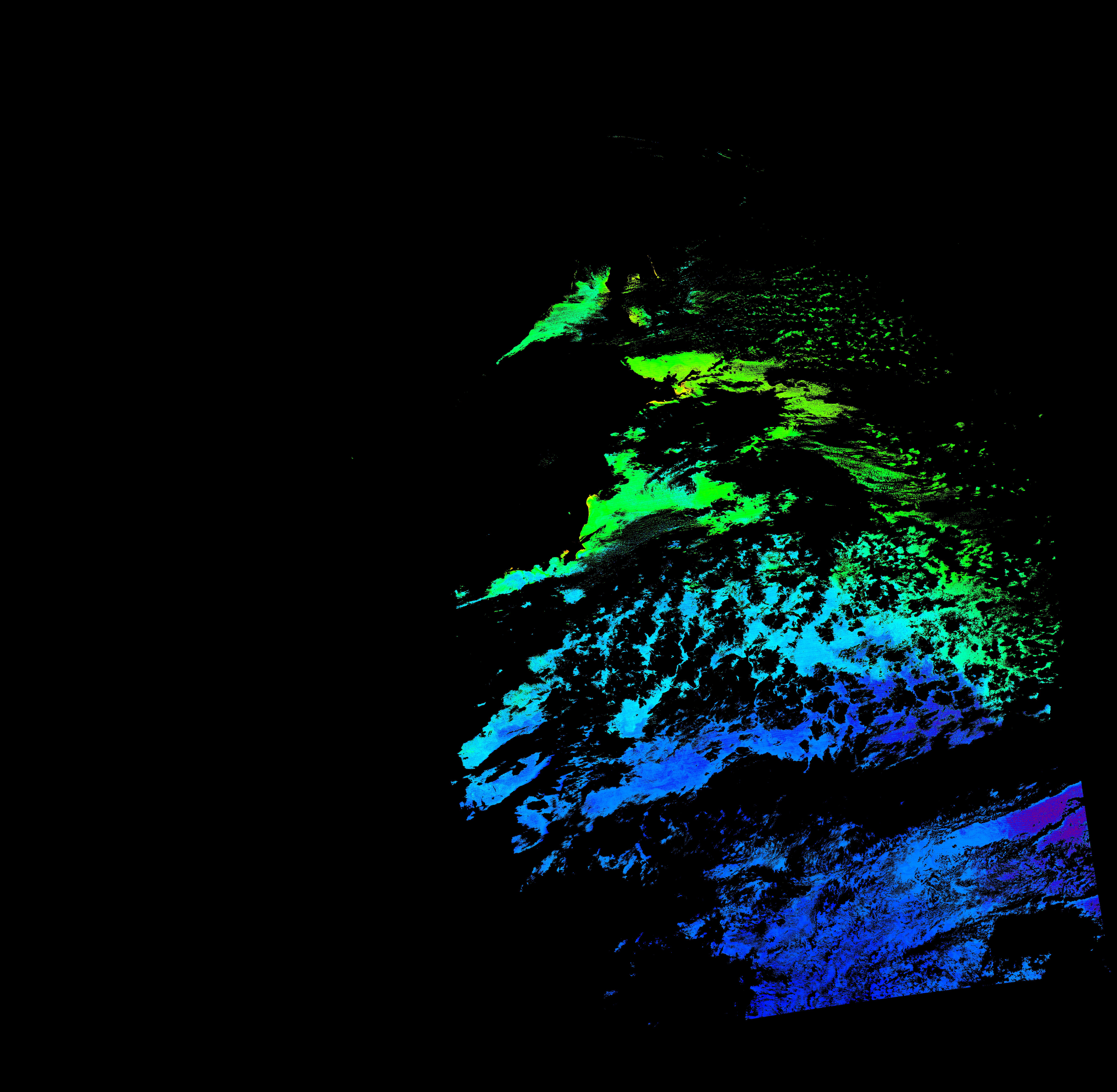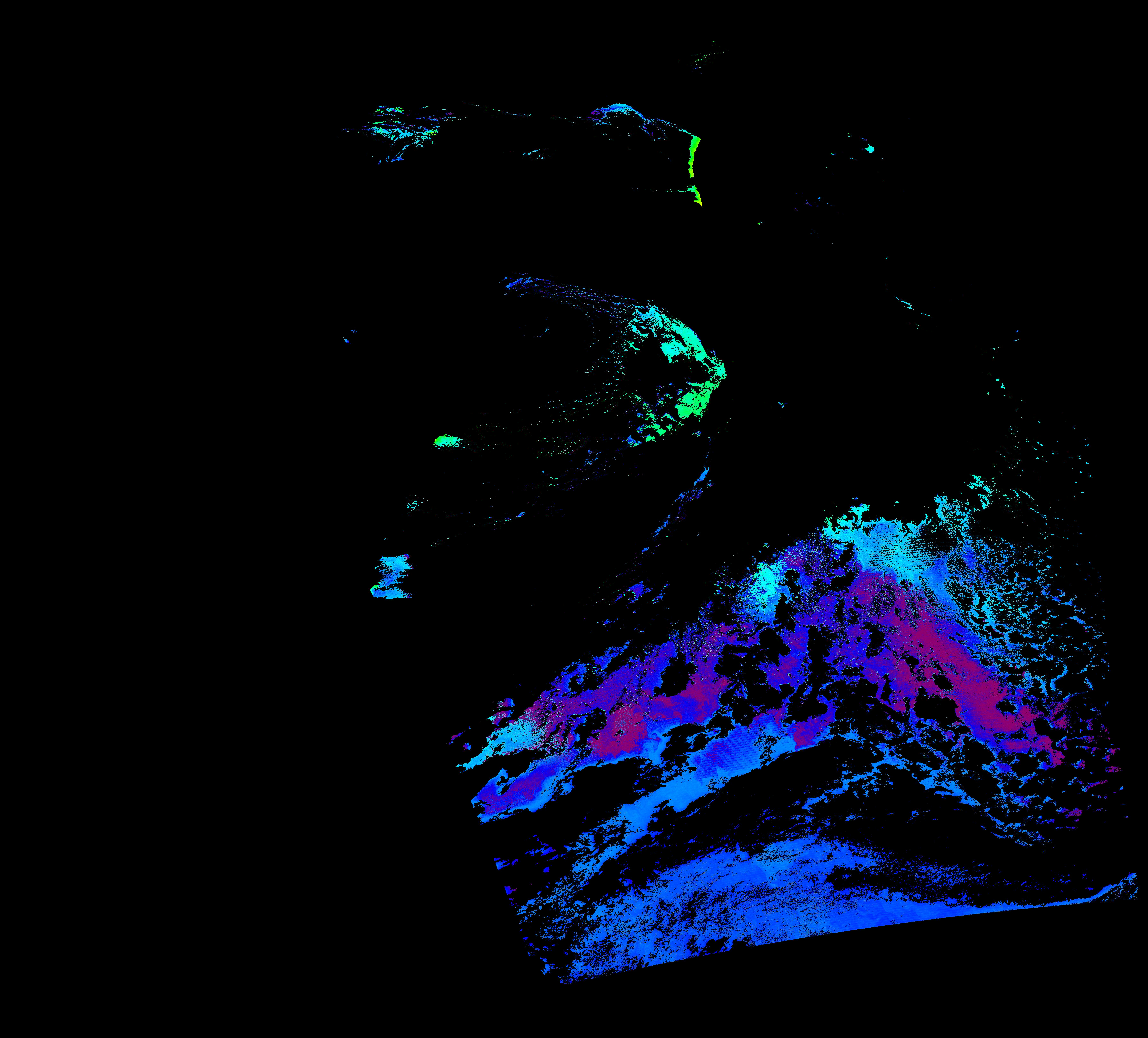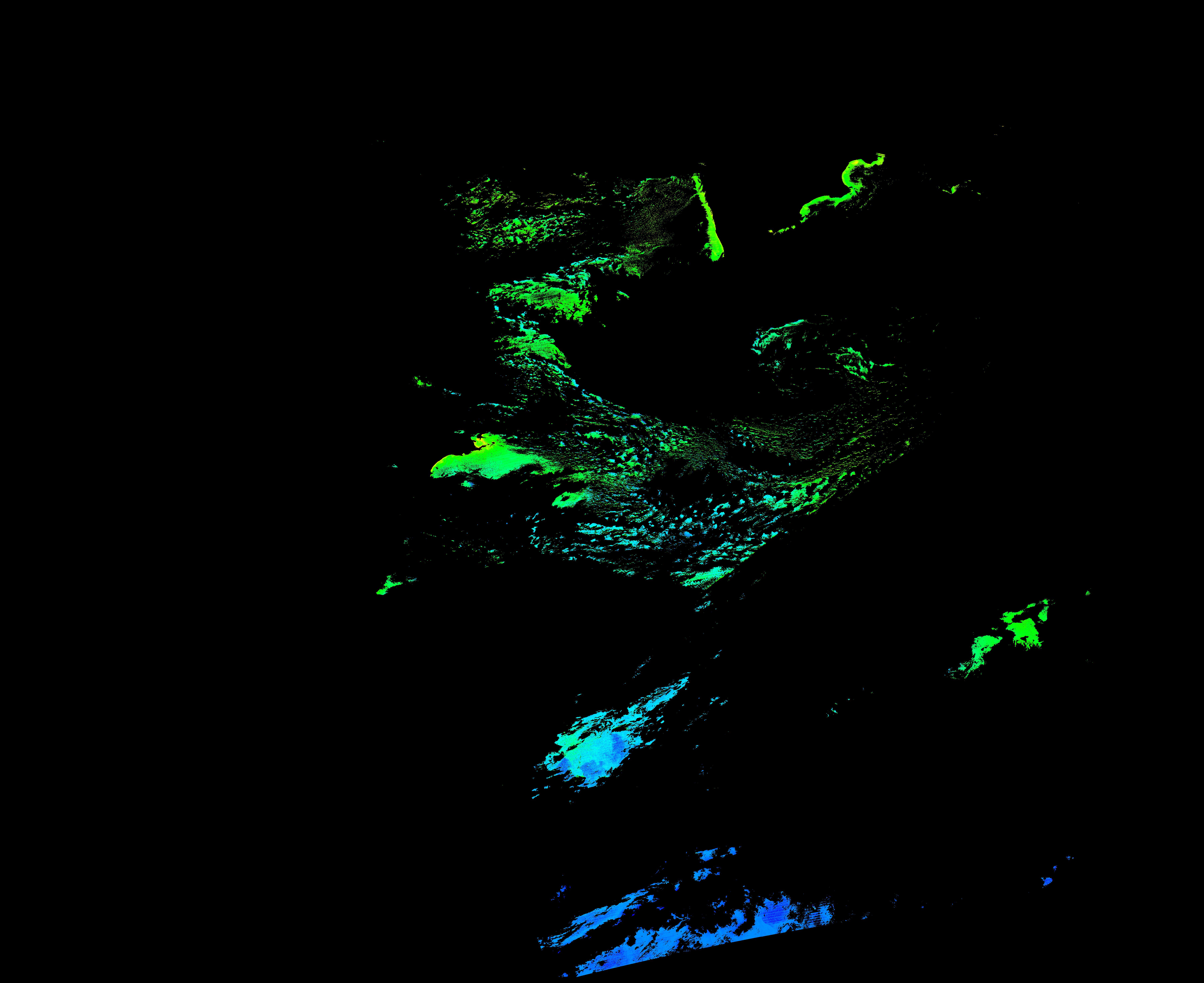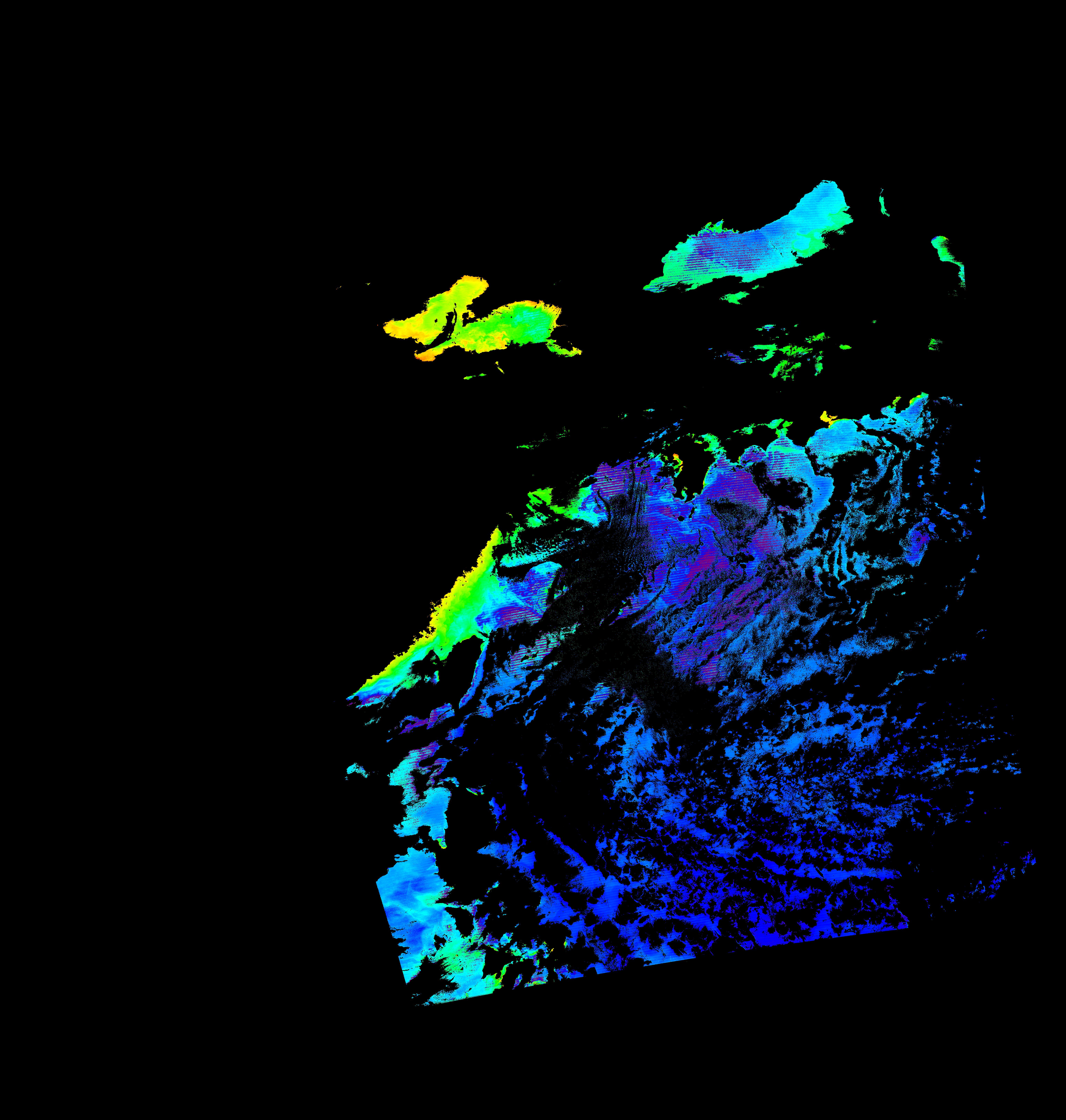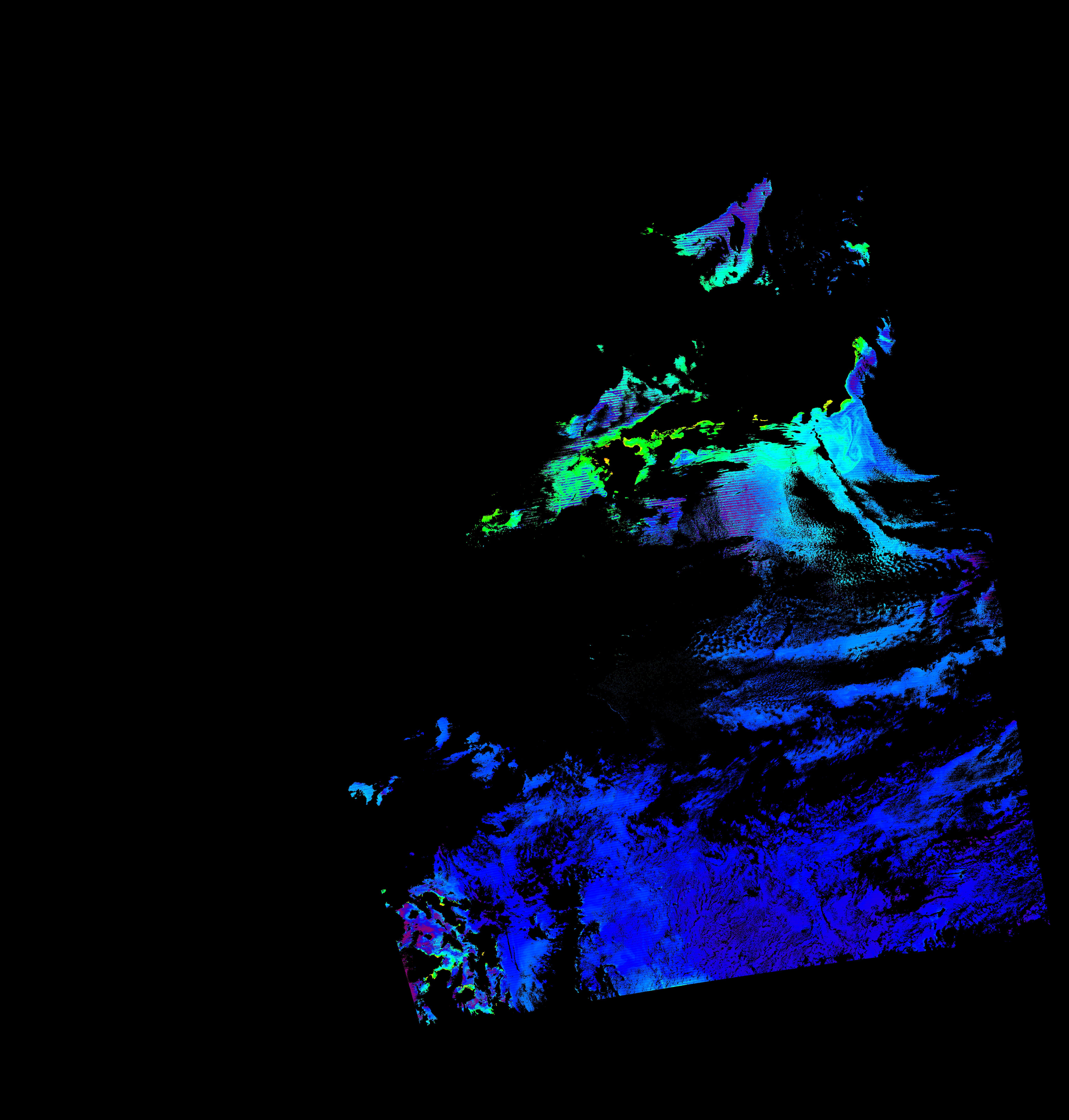スオミ-NPP(S-NPP)に搭載された可視近赤外放射計群(VIIRS)は、可視波長帯域から、近赤外そして熱赤外波長帯域に感度を持つセンサーです。このサイトでは、農大オホーツクキャンパス(網走市)、情報大(千葉市)、農大宮古亜熱帯農場(宮古島市)の地上局において直接受信したVIIRSのデータから作成されたトル―カラー画像、海洋プロダクト、陸圏プロダクトをモニターすることが可能です。 Chl-a:0.01 to 100.0 mg m^-3 Chl-a=10^((geotiff_value-128)/63.5)