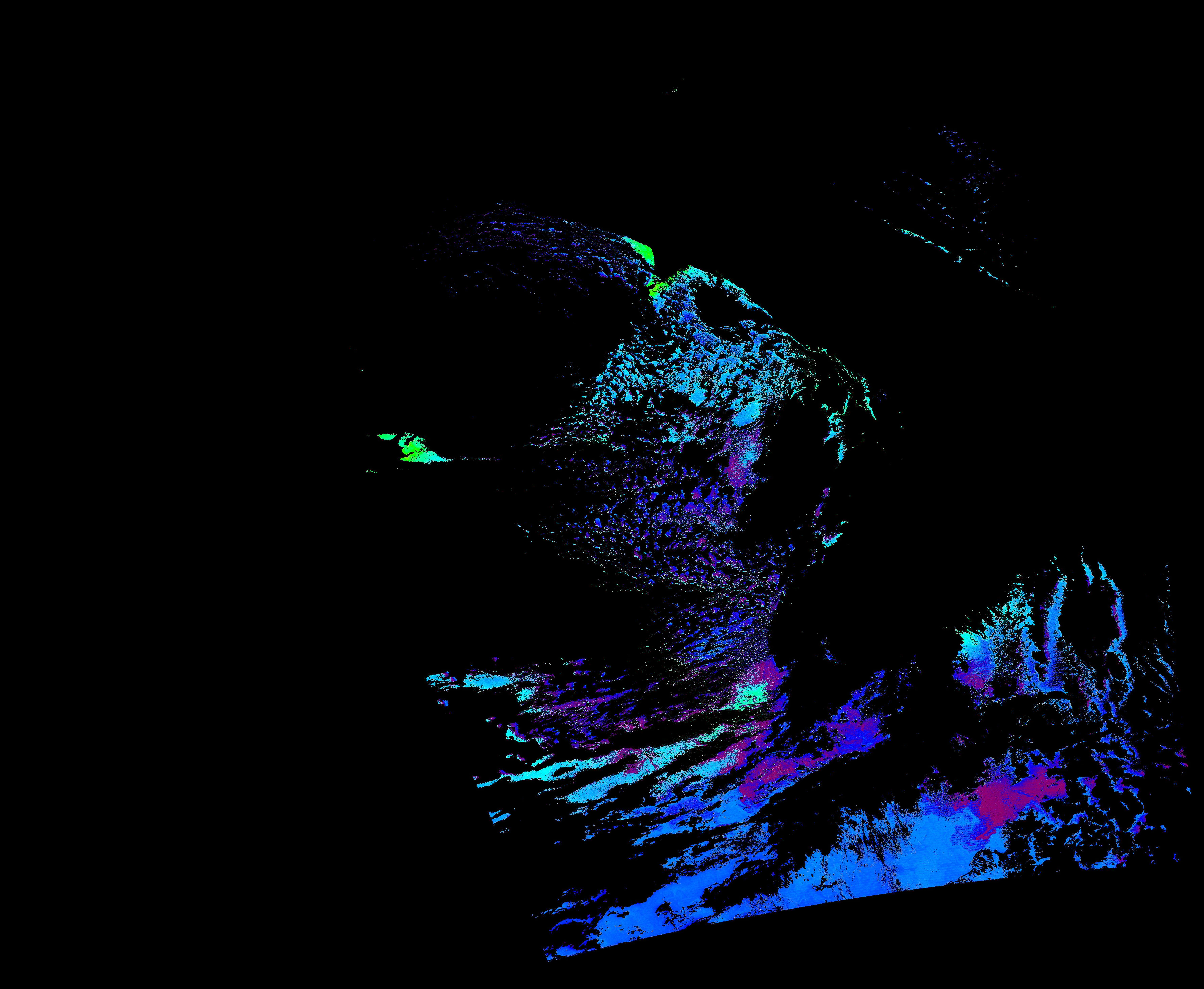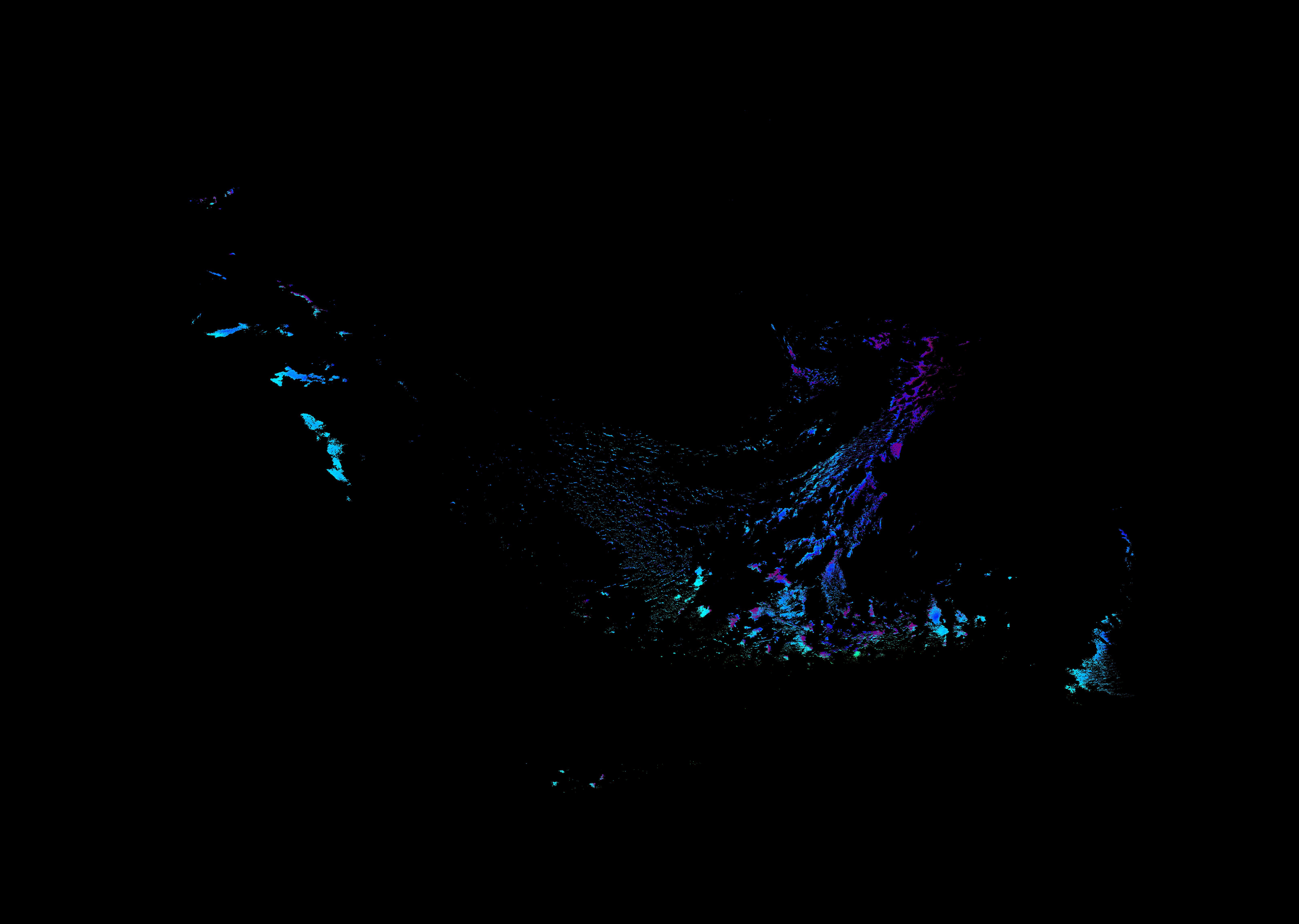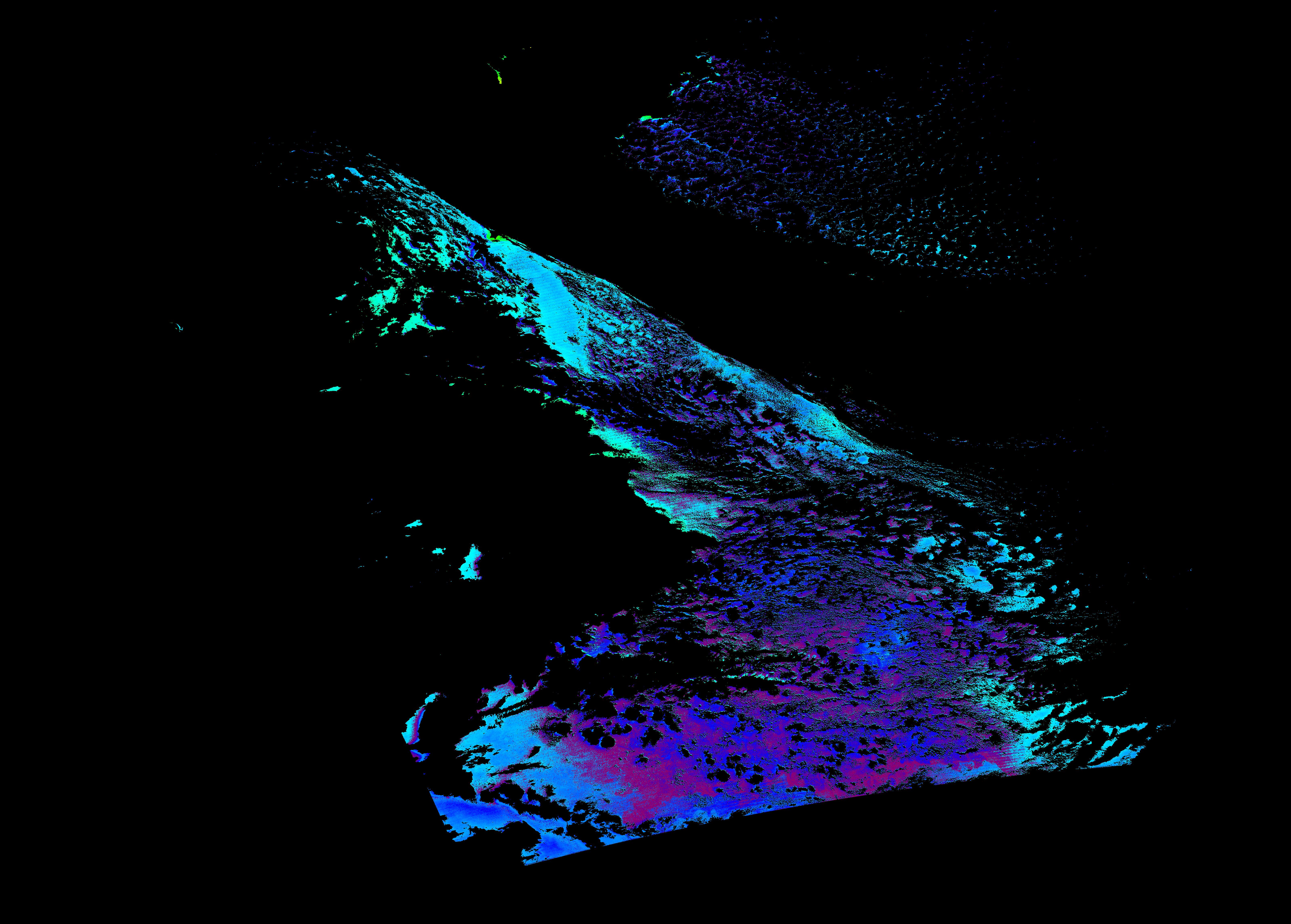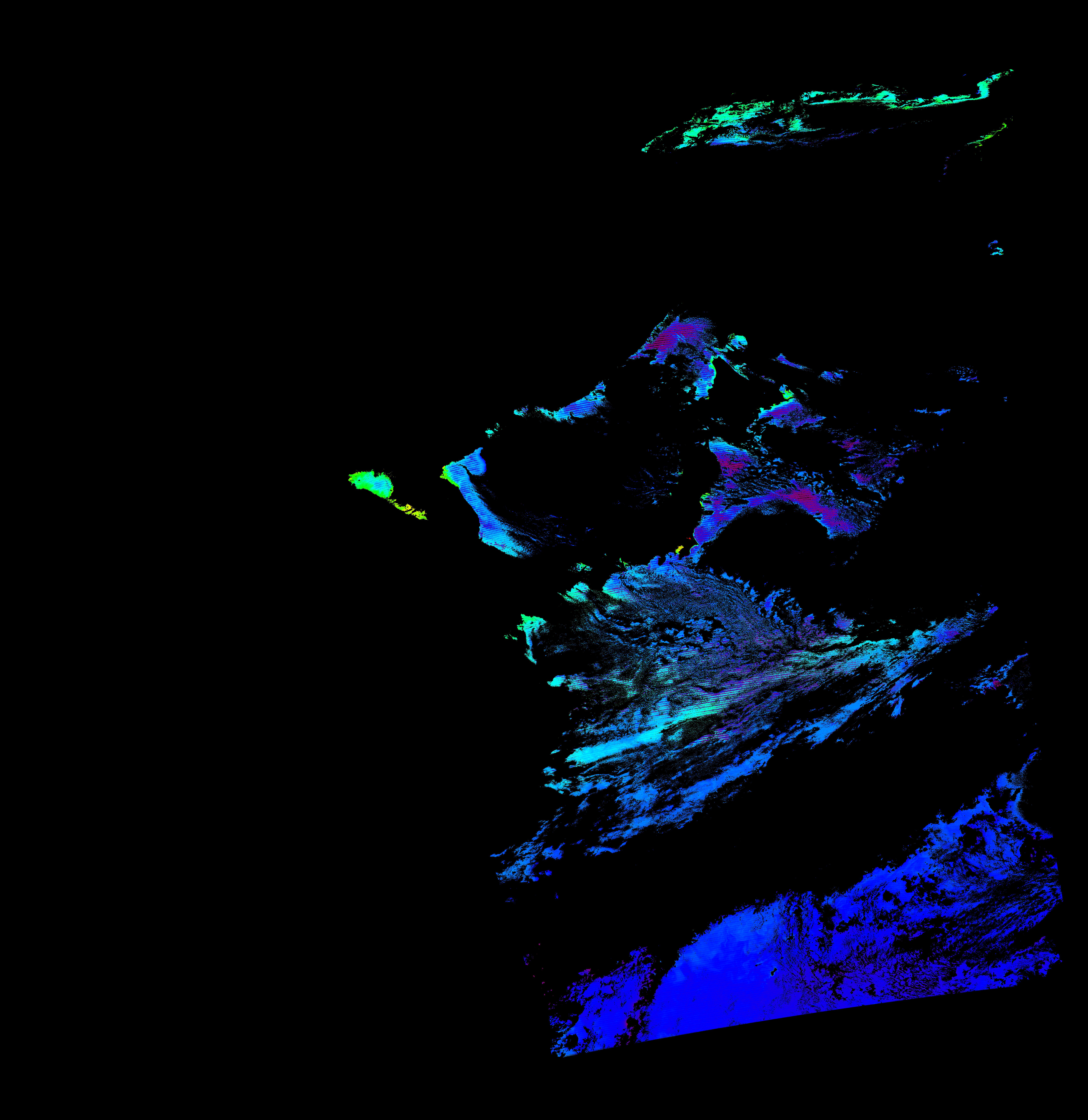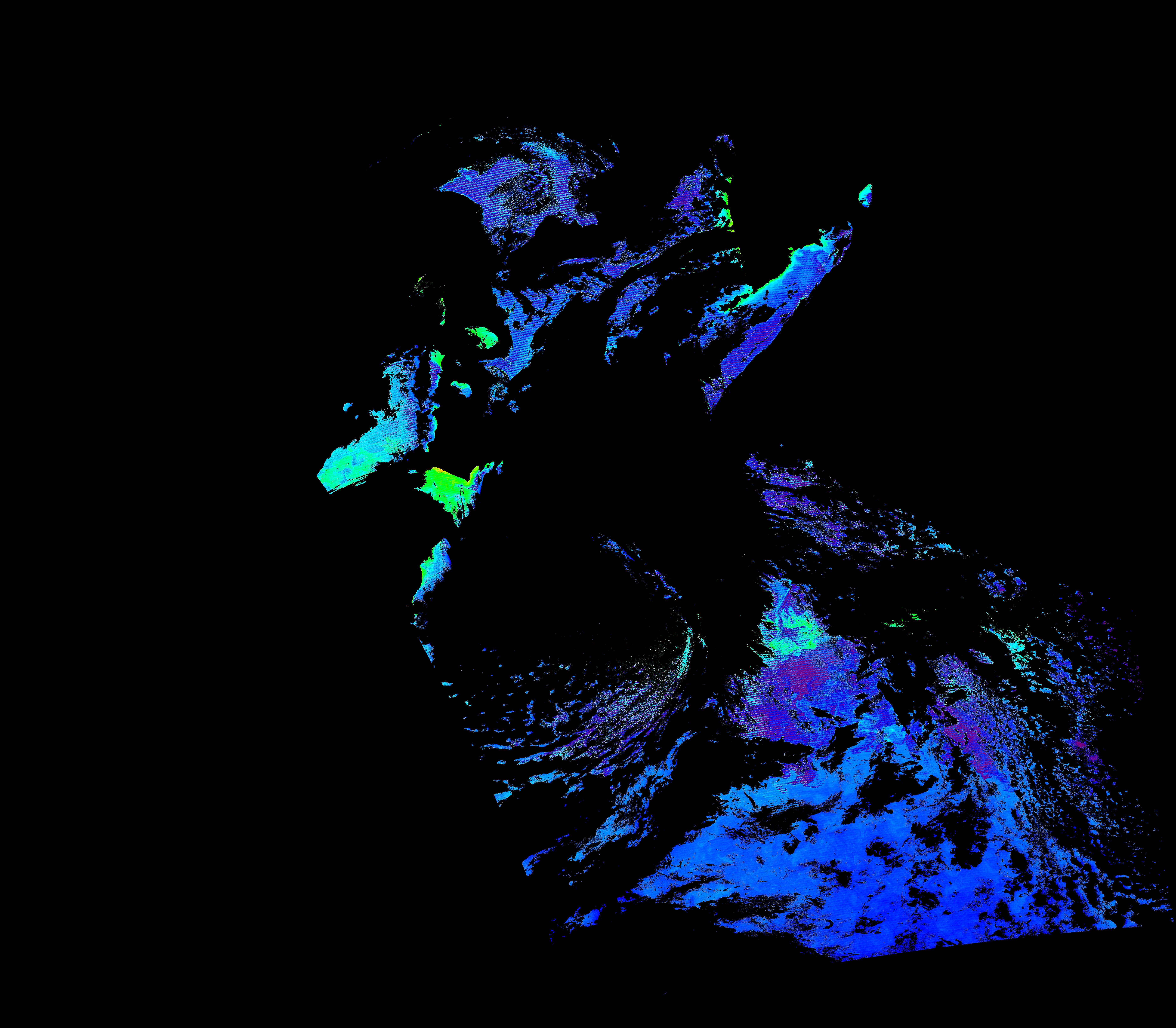 スオミ-NPP(S-NPP)に搭載された可視近赤外放射計群(VIIRS)は、可視波長帯域から、近赤外そして熱赤外波長帯域に感度を持つセンサーです。このサイトでは、農大オホーツクキャンパス(網走市)、情報大(千葉市)、農大宮古亜熱帯農場(宮古島市)の地上局において直接受信したVIIRSのデータから作成されたトル―カラー画像、海洋プロダクト、陸圏プロダクトをモニターすることが可能です。 Chl-a:0.01 to 100.0 mg m^-3 Chl-a=10^((geotiff_value-128)/63.5)