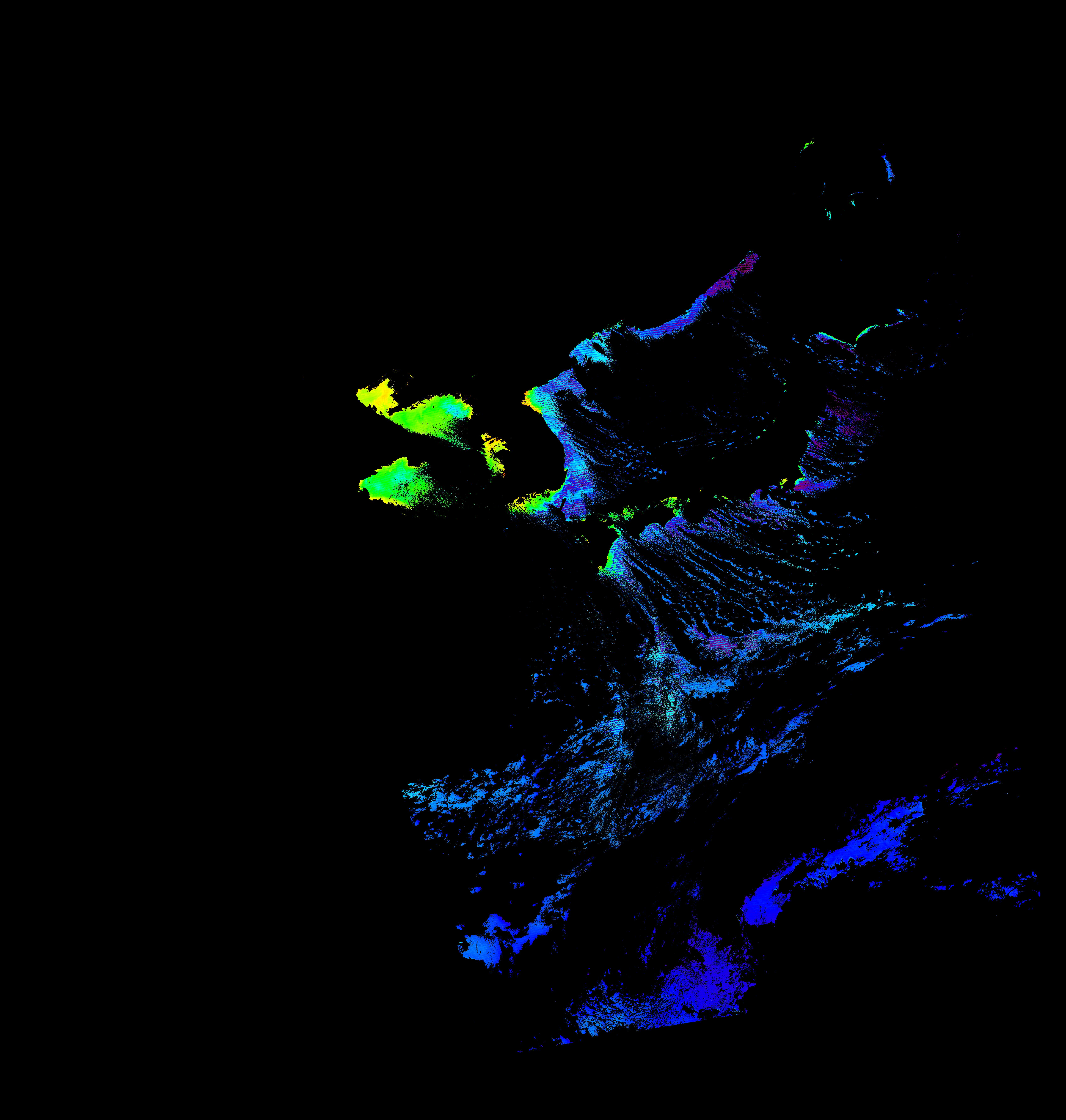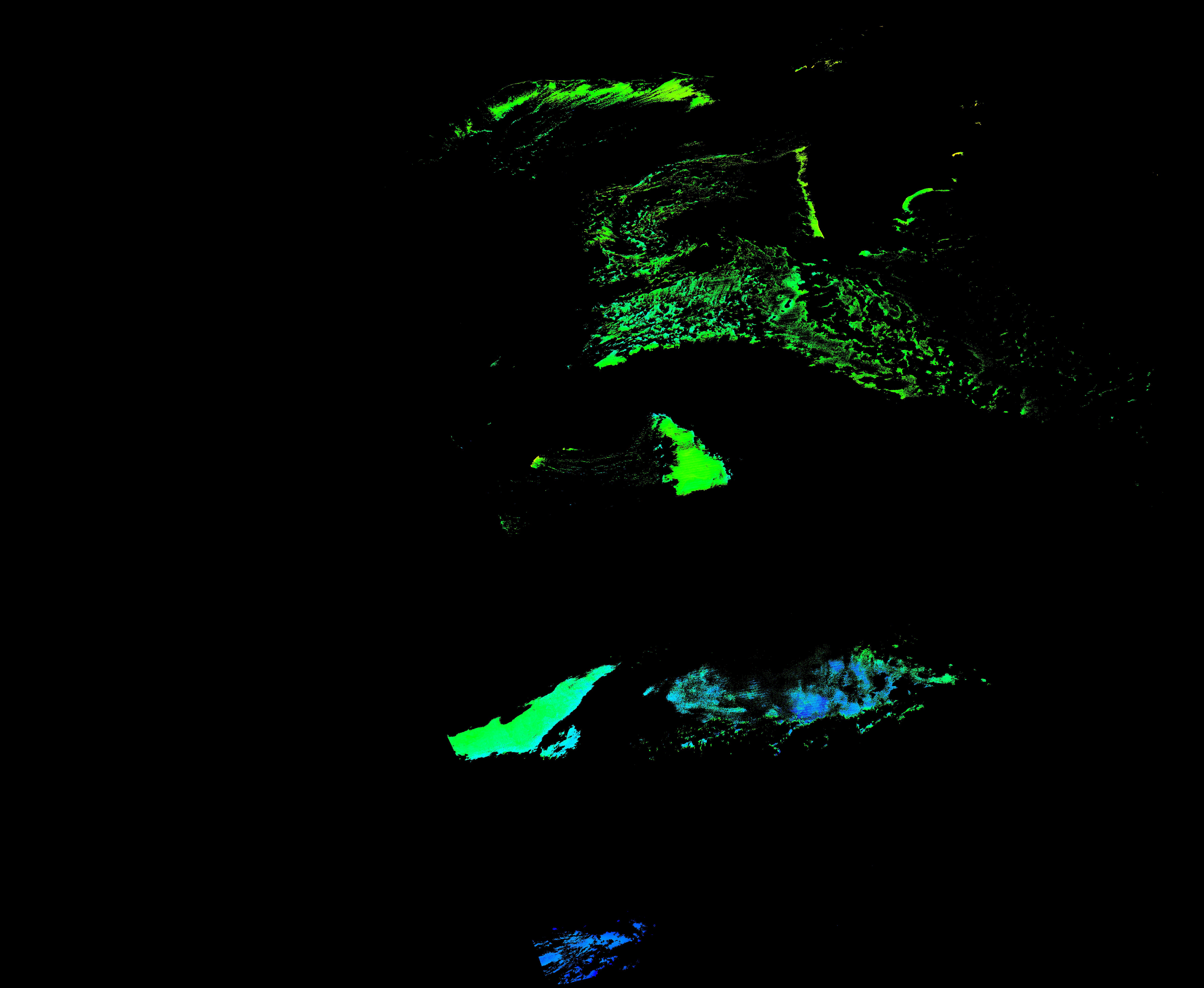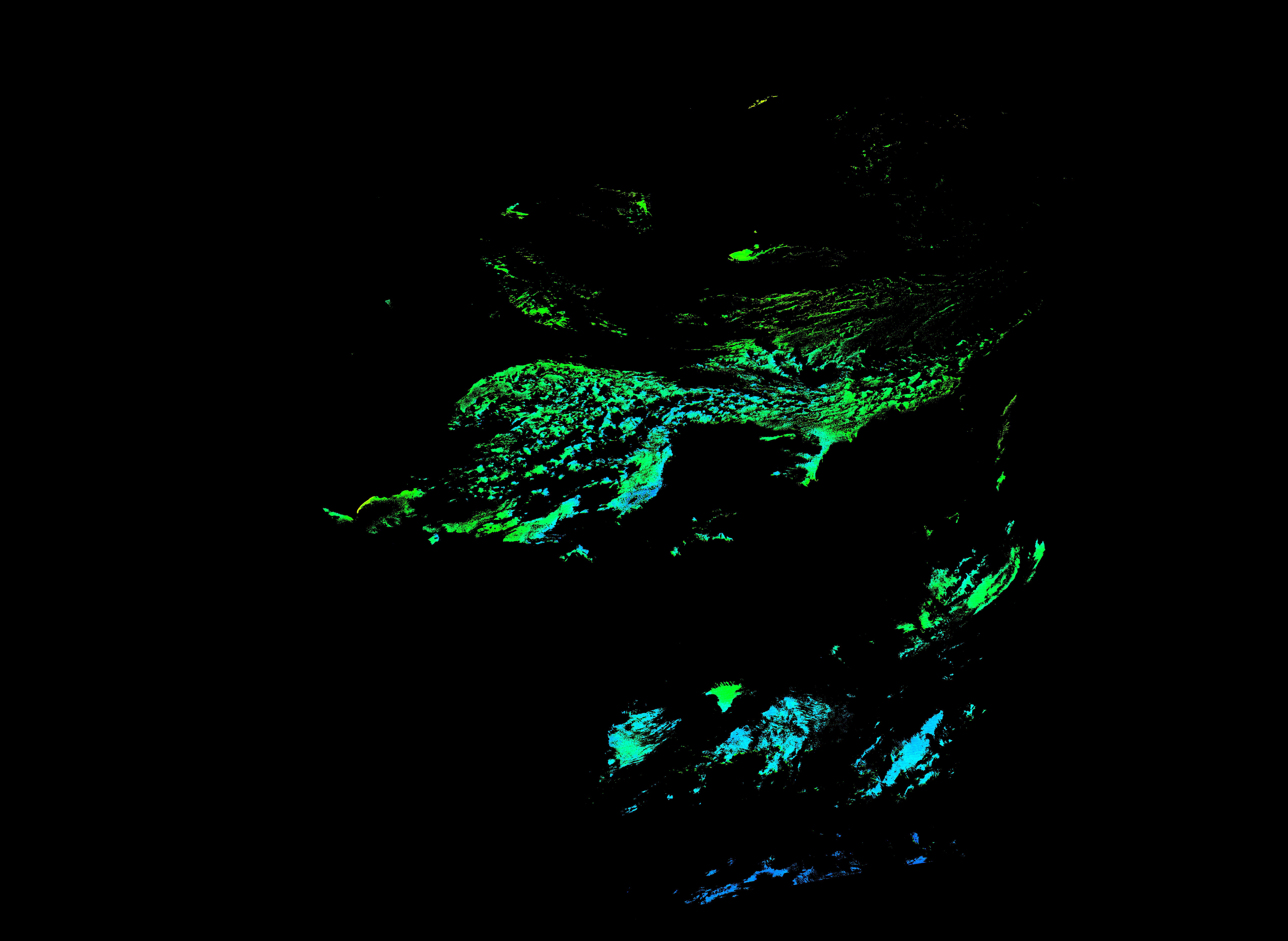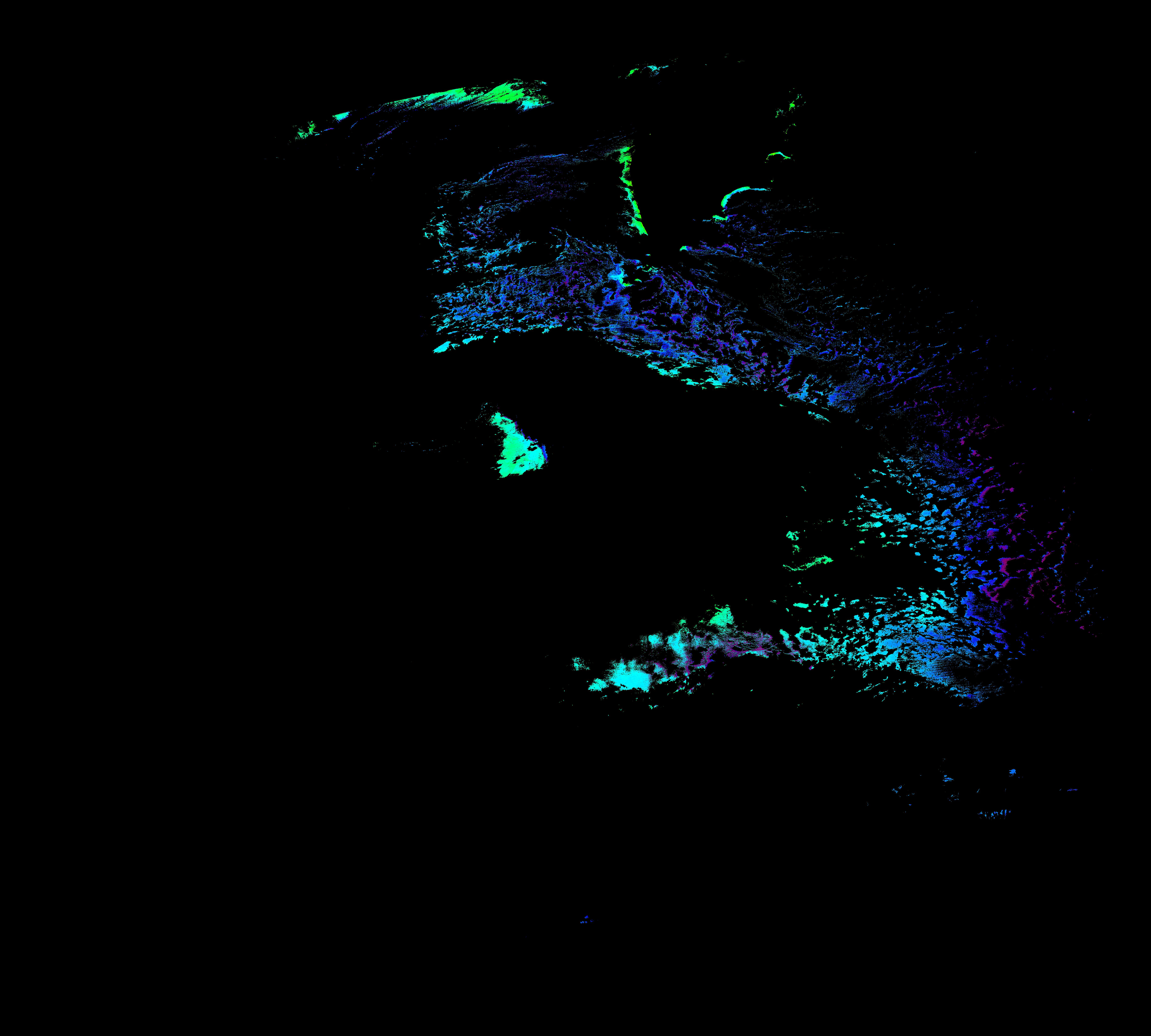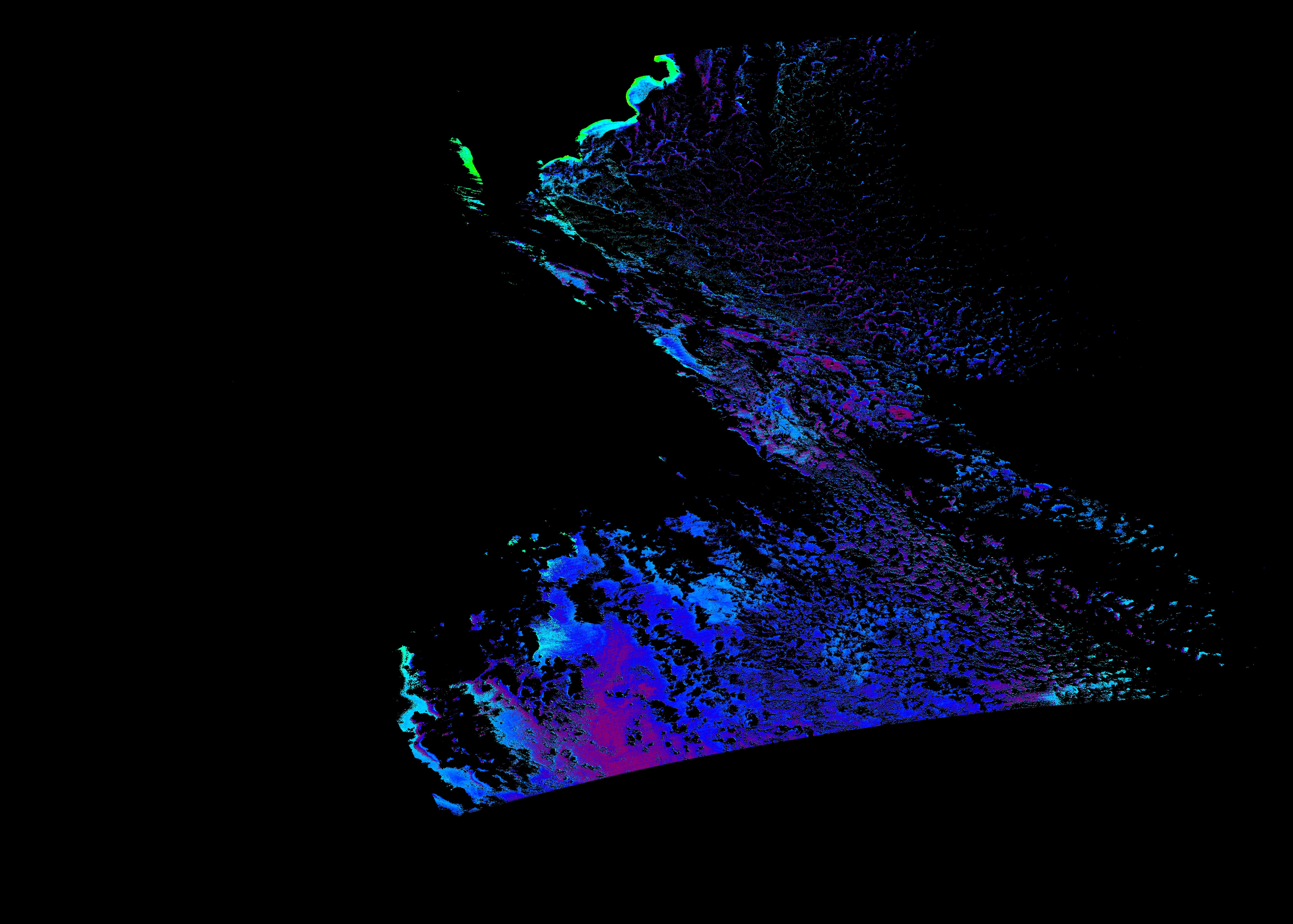スオミ-NPP(S-NPP)に搭載された可視近赤外放射計群(VIIRS)は、可視波長帯域から、近赤外そして熱赤外波長帯域に感度を持つセンサーです。このサイトでは、農大オホーツクキャンパス(網走市)、情報大(千葉市)、農大宮古亜熱帯農場(宮古島市)の地上局において直接受信したVIIRSのデータから作成されたトル―カラー画像、海洋プロダクト、陸圏プロダクトをモニターすることが可能です。 Chl-a:0.01 to 100.0 mg m^-3 Chl-a=10^((geotiff_value-128)/63.5)